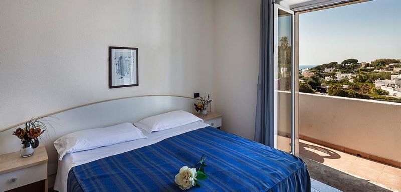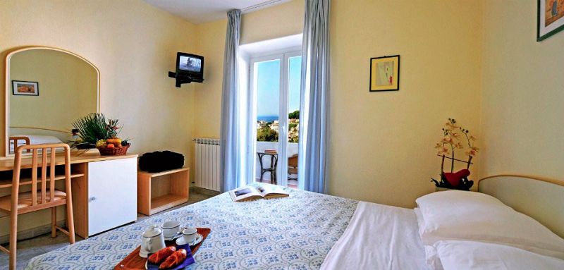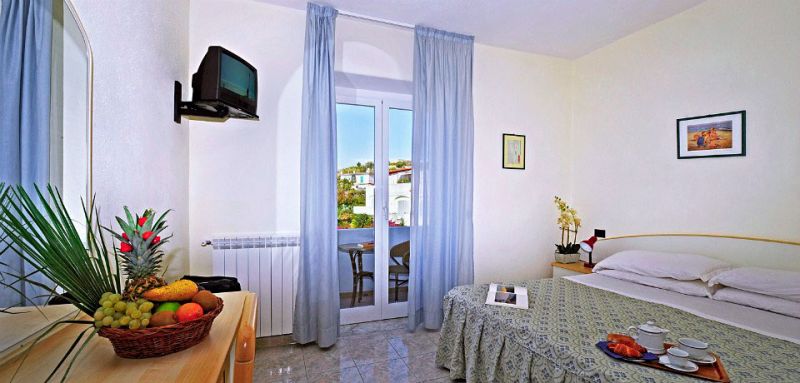 На острове Искья, в 2 км от центра г. Форио, в 600 м до моря (достаточно крутой спуск, через дорогу).