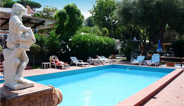 На острове Искья, в 58 км от аэропорта Неаполя (17 км до порта Неаполя + 32 км на пароме от Неаполя до острова Искья); в 10 км от порта г. Искья-Порто, в 2 км от центра и порта г. Форио, в 700 м от моря (в бухте Сан-Франческо с песчаным пляжем). В 100 м от отеля - остановка автобуса. Ближайший термальный парк "Негомбо" (1,8 км).
