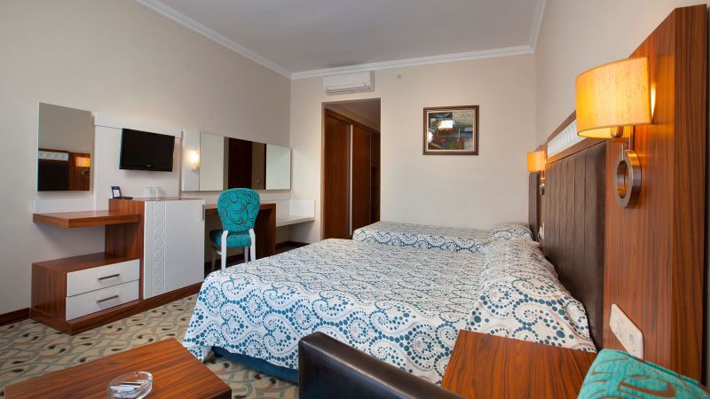 Отдыхали в отели в сентябре 2025. Отель ни как не 5 звезд, я бы оценила на 3 звезды. Номер нам достался двухкомнатный семейный во втором корпусе за дополнительную плату. Номер относительно нормальный, единственное ковралин был грязный, по телевизору идут 2 русских канала, и то все рябит, интернета во втором корпусе нет вообще. Еда ни как не на 5 звезд, еда однообразная, пресная, рыбу давали на гриле, ни соленая, ни перченная. Салатов нет, просто нарезанные овощи и зелень. Фрукты давали: 2 вида яблок, арбуз и арельсины, при чем все испорченные, прошлогодние. Анимация просто одно разочарование. Для детей была анимация вечерняя с 20 00 до 21 00, танцы под песни, песни были на немецком языке, песни все 10 дней были одни и теже. Взрослая анимация тоже ни какая. Я бы второй раз в этот отель не поехала. Единственное, что сгладило отдых, это море, песчанный пляж, но пляж он во всем Сиде такой.