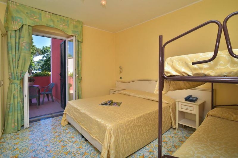 На о. Искья, 1,5 км от города Форио, в 700 метрах от пляжа.