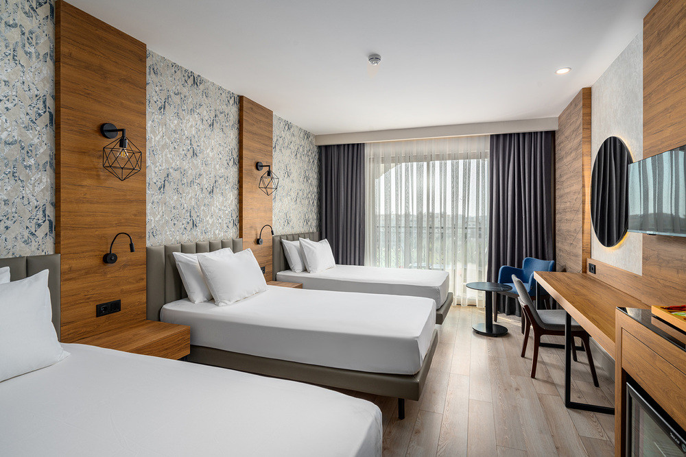 Отдыхали в отеле с 7.09-21.09.25, номера достались в старом корпусе, трехкомнатный номер, 2 кондиционера. Хватало на охлаждение, большоу балкон, выходил на бассейн и бар у бассейна. Из минусов - очень старые двери в номерах в старом корпусе., скрипят это не то слово, грудной ребенок просыпался, до 11 утра нет горячей воды, видимо пока не нагреются баки на крыше. Плюсы - анимация целый день, у бассейна, на пляже, гимнастика, дартс игры разные, в бассейне каждый день какой то движ, детям вечерняя дискотека, ночная диско на пляже для взрослых каждый вечер, тематические истории… еда как везде в Турции, алкоголь норм, виски, джин, вино, игристое и тд чистота везде, персонал старается Для детей до 3 лет , на наш взгляд, нет детского меню, островато все, мы везли все с собой, да были и макароны и рис и д, но мы подстраховались… за 400 тыс на 3 взрослых и ребенок 1, 5 года на 14 дней из СПб нормально