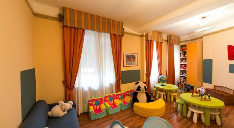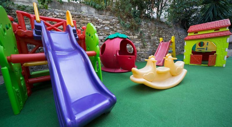 детский бассейн, игровая площадка, развлекательная программа (кино, книги, игры), комнаты для пеленания, детская ванночка, стерилизатор для бутылочек, няня, детские стульчики в ресторане.
