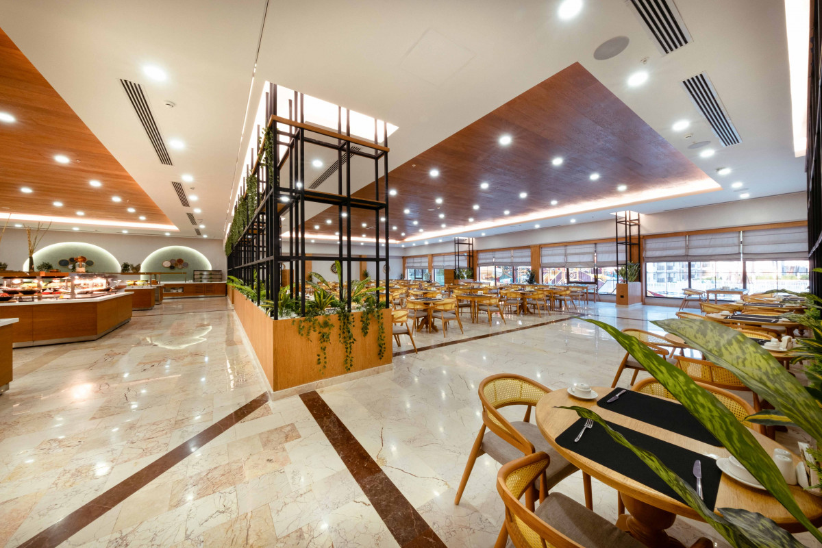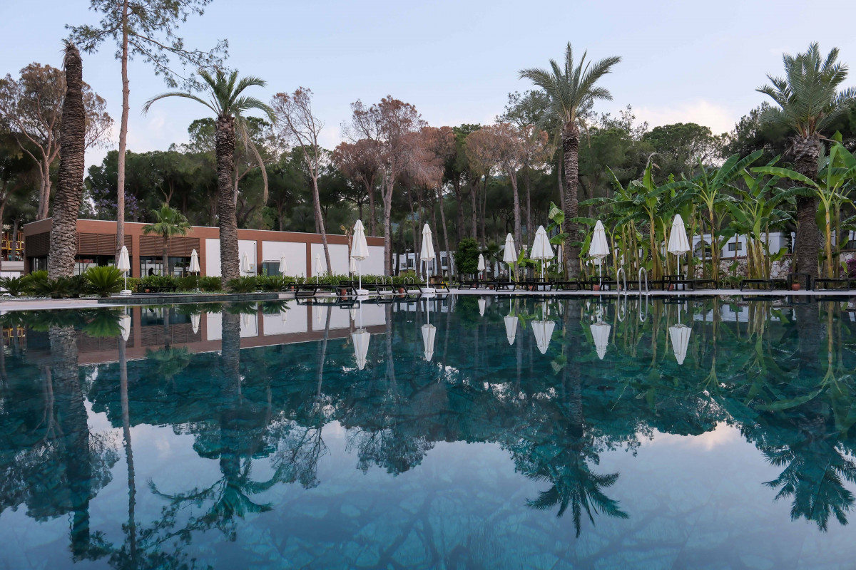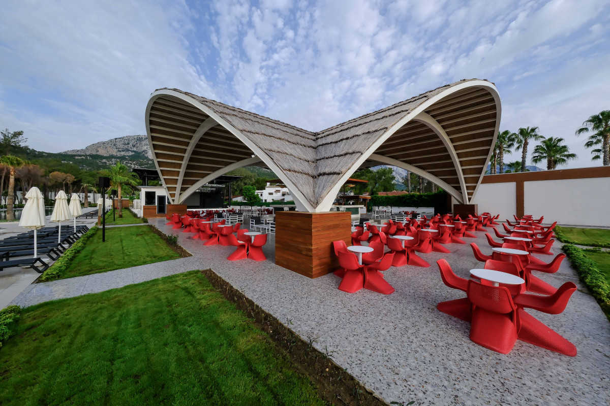 Всем привет. Хочу поделится с вами честным отзывом. Летали с мамой в этот отель в середине мая этого года. Мне 30 маме 48 пишу для понимания предпочтений по возрасту. От аэропорта ехали не долго меньше часа , приехали в отель часов в 11 , заселение было в 14.00 . Сразу пошли прогуляться , выпили в баре у бассейна по бокалу просекко и успели на поздний завтрак в ресторане с видом на море . Мы сели за стол и нам принесли много , много разной еды . При заселении я попросила номер на втором этаже т.к отель был полным и мою просьбу выполнить не получилось нам сделали комплимент и дали номер с 2мя комнатами и сан узлами , но на первом этаже . Вещи сразу помогли доставить до домика . Про номер : чистый , уборка каждый день , смена принадлежностей каждый день , на первом этаже минус в сушке вещей , на балконе их мы не оставляли когда уходили , но я думаю с воравсвом там проблем нет можно было и оставлять , больше места для мокрых вещей не было , а в номере они не сохли . Утюга нет , есть стирка и глажка за доп.цену . Кондиционер отлично работает , телевизор с интернетом . Был чайник и холодильник который каждый день пополняли (кола, фанта, соки, вода ). Чаевые оставляли , а когда забывали качество уборки не менялось . Вещи не пропадали . Разеток для зарядки было много . Есть фен , гель для душа , шампунь , крем , щетки , мочалки , тапочки . Алкоголь хороший , импортный : есть все напитки какие пожелаете, делают очень вкусные коктейли в баре у бассейна , за небольшие чаевые обслуживают чуть быстрее пиво в бутылках только в этом баре и в лобби в баре где проходит дискотека пиво разливное. В лобби баре можно пить круглосуточно . Есть бар с кофе тоже у бассейна . У Барра стоит холодильник с напитками , айран , соки , вода. Еда на завтрак , обед , ужин нормальная , много зелени , фруктов , турецких блюд , мясо на гриле и разных видов приготовлений , супы , сладости , сыр разных видов , оливки , овощи , рыба , ну все как обычно … утром завтраки по стандарту яйца , каши и т.д ПО ПОВОДУ МУХ да они были , но нас не напрягали и чайки летают , садятся прямо на столы вот это не сильно приятно , потому-что они оставляют свои ... персонал их гоняет , мы просто выбирали стол поглубже и никаких проблем . ОЧЕНЬ ГРЯЗНЫЕ СТАКАНЫ и посуда в целом тоже , но стаканы для сока в баре ресторана особенно , иногда я даже ходила мыть стакан в туалет сама . ЭТО ЕДИНСТВЕННЫЕ МИНУСЫ ДЛЯ МЕНЯ за все пребывание в отеле . днем можно покушать на улице у машинки , там делают что-то похожее на шаурму и еще там очень вкусные лепешки с мясом и с сыром , есть запечная картошка с разными наполнителями , там мы кушали днем иногда когда хотелось разнообразить обед . Но иногда мы брали еду из ресторана и приходили туда с тарелкой кушать на улице . есть отдельный бар со сладостями и мороженным . Аля карт : тоже был Италия , Турция и еще какой-то , мы так и не дошли до них . анимация : каждый день были какие-то развлечения , аквааэробика на батутах в воде и просто , волейбол на пляже , йога и.к мы днем проводили время у моря особо не обращала внимание на это всё , один раз была пенная дискотека в бассейне , был Турецкий праздник день Ататюрка , вышел весь персонал с флагами , барабанами , пели песню на сцене , еще был день когда девочки танцевали днем . вечером : каждый день была шоу программа , все столы были заняты , но место мы всегда находили , весером можно покурить кал