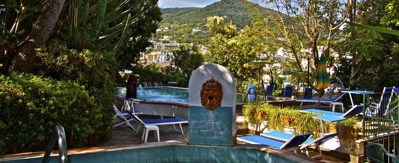 На острове Искья, в 50 км от аэропорта Неаполя (17 км до порта Неаполя + 32 км на пароме от Неаполя до острова Искья); в 500 м от порта г. Искья-Порто, в 250 м от центра курорта Искья-Порто, в 500 м от моря.