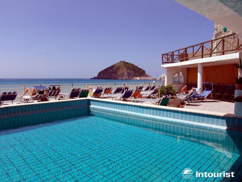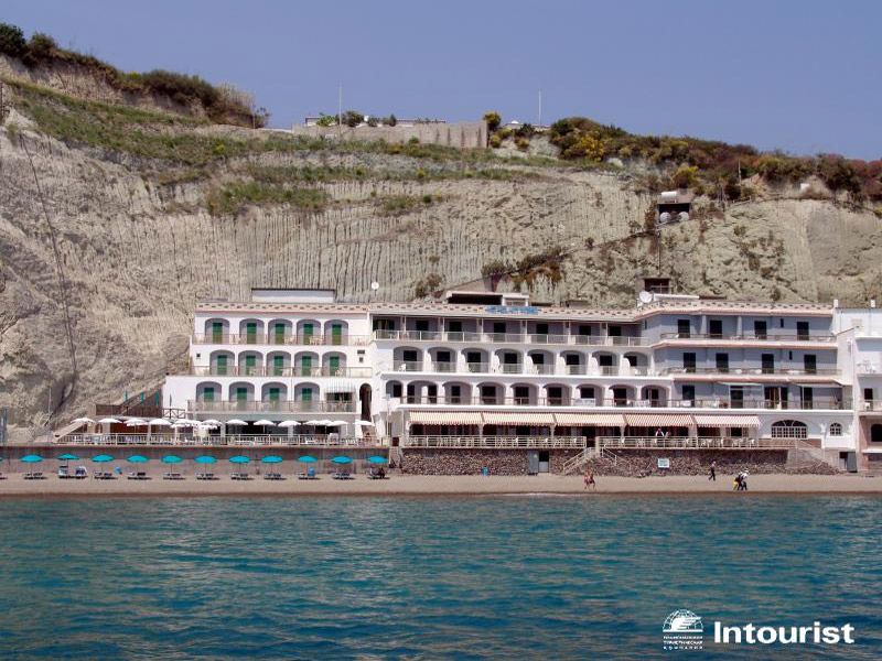 Достаточно изолированно: на одном из самых красивых пляжей острова Искья - Маронти. Сюда нельзя подъехать на туристическом автобусе или автомобиле: от ближайшей автобусной остановки надо пройти по пляжу вдоль отвесной скалы (около 400 м). Групповой трансфер довозит туристов до автобусной остановки, далее нужно идти до отеля пешком по пляжу, багаж помогает довести носильщик отеля (ему принято оставлять чаевые 1-2 евро). Прямо до отеля можно доехать на водном такси от ближайшего курортного городка Сант-Анджело (2 км).