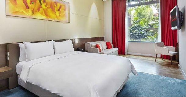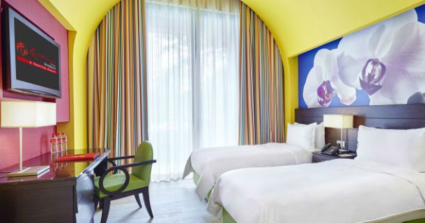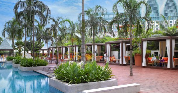 Отель расположен на территории курорта World Sentosa на о. Сентоза, в нескольких минутах ходьбы от тематического парка Universal Studios Singapure, аквариума, тематического аквапарка Adventure Cove Waterpark; недалеко от Festive Walk и World Square, множества ресторанов, магазинов и мест развлечений.