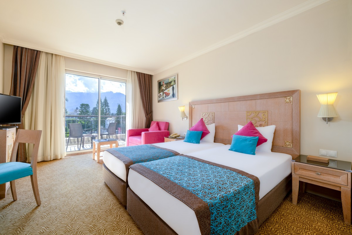 Отдыхали компанией в начале октября 2025 года. Мы в этом отеле второй раз. Понравилось все и на этот раз! Да, до номера не проводили, но предложили, мы сами отказались. номер обычный стандарт с боковым видом на море, как и бронировали. Друзьям без проблем поменяли на семейный за чисто символическую доплату. Небольшой минус это ночные клубы, которые расположены рядом. Там до 5 утра музыка гремит, так что будете просыпаться под "Царицу")) Но при закрытом балконе ничего практически не слышно. В номере мини бар пополняли ежедневно минералкой, колой, фантой, холодным чаем и просто водой ежедневно. Есть чайник и пакетики с чаем и кофе. Уборка ежедневная. Мы оставляли по доллару может быть поэтому постель меняли через день. Может быть все зависит от горничной. В ресторане очередей нет. Подходи и бери. Еда в общем разнообразная, по утрам всегда есть соленая форель. Четверг - рыбный день. Были роллы, королевские креветки(очень вкусные, второй четверг мидии и креветки, ну и рыба слотов 5. От тунца до дорадо. Много жареной и тушеной рыбы кусочками. Мяса тоже много всякого, все не перепробовали. По утрам свежевыжатый апельсиновый сок бесплатно. Официанты молодцы, не разрешают чтобы мы сами напитки приносили. Мы всегда садились за один и тот же стол, поэтому официант уже знал наши предпочтения и нес сразу напитки. Анимация каждый день. Были акробаты, живая музыка, дискотеки. 6 октября провели Октоберфэст-праздник пива. Как здорово все было организовано! Море пива и море еды. Тут были и сладости и немецкие закуски. При заезде были в основном русские, но потом все как то разъехались и стало больше немцев. Они загорали в основном у бассейна, поэтому на пляже лежаки всегда можно было найти, даже компании. Напитки импортные и местные. Но в разных барах разные. Самые лучшие по нашему мнению в Лагун баре. Вернусь сюда , однозначно да!