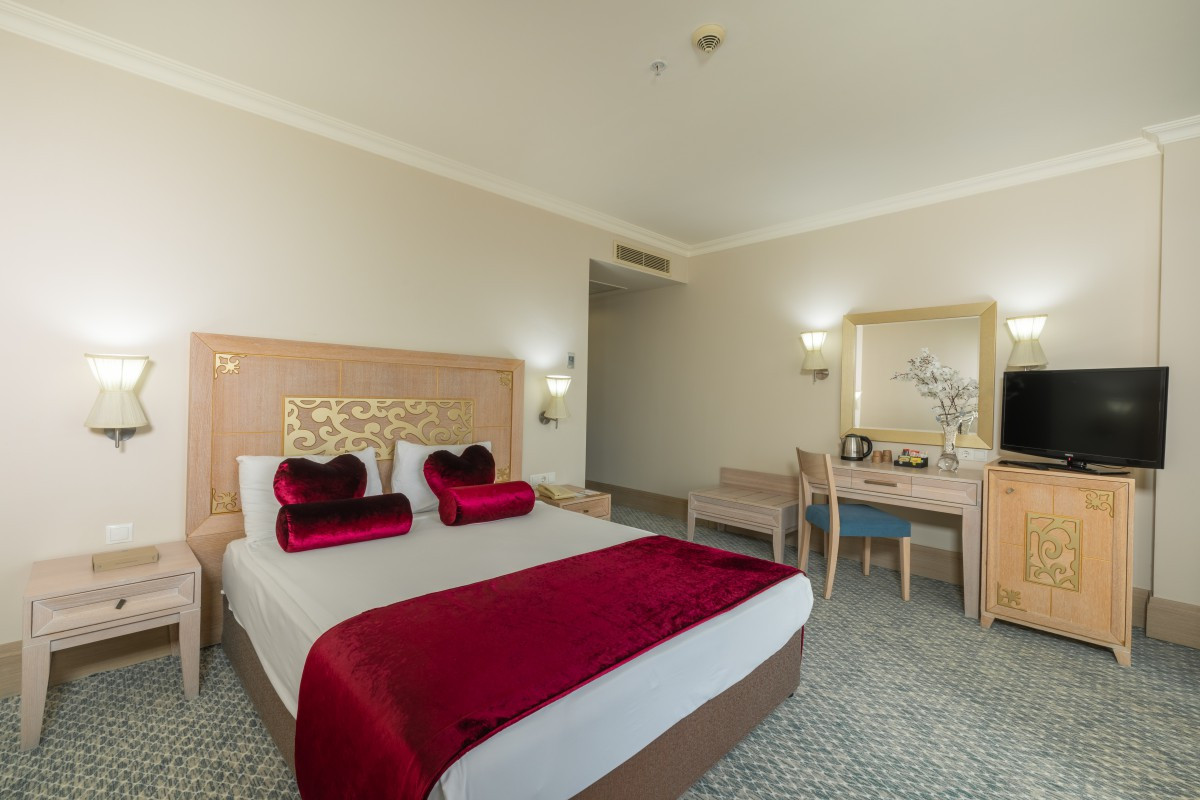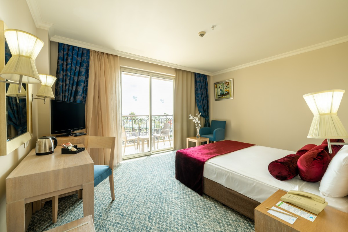 В данный момент отдыхаем в этом отеле. Не понимаю завышенный рейтинг отеля. Больше напоминает пансионат. Молодым здесь делать нечего. Если вы в первый раз в Турции, то все сойдет, но если вам есть с чем сравнивать, то ни за какие деньги не езжайте сюда. В основном 80% европейцы. В целом не совсем все ужасно. Питание- однообразное и без излишков. На обед и ужин одно и то же. И каждый день все повторяется. Правда сегодня подавали семгу. Спиртное нормальное, есть выбор. Бар круглосуточный, сене бар тоже до поздна работает. Мороженого большой выбор и в упаковках и в рожках. Завтраки хорошие, большой выбор вкусных сыров. Кондитерка супер! Есть клубника и другие фрукты. Вот по детскому питание ужасно, нет детских пюрешек, меню как и у взрослых. Только есть детские молочные коктейли в упаковку с трубочкой и все. Номера- это нечто, допотопные и очень маленькие. Но белье меняют каждый день. Уборка так себе. Бар пополняется каждый день. Пляж и море отличные! Правда погода подвела, уже третий день идут дожди. Территория компактная, море совсем рядом. Однозначно, этот отель не рекомендую.