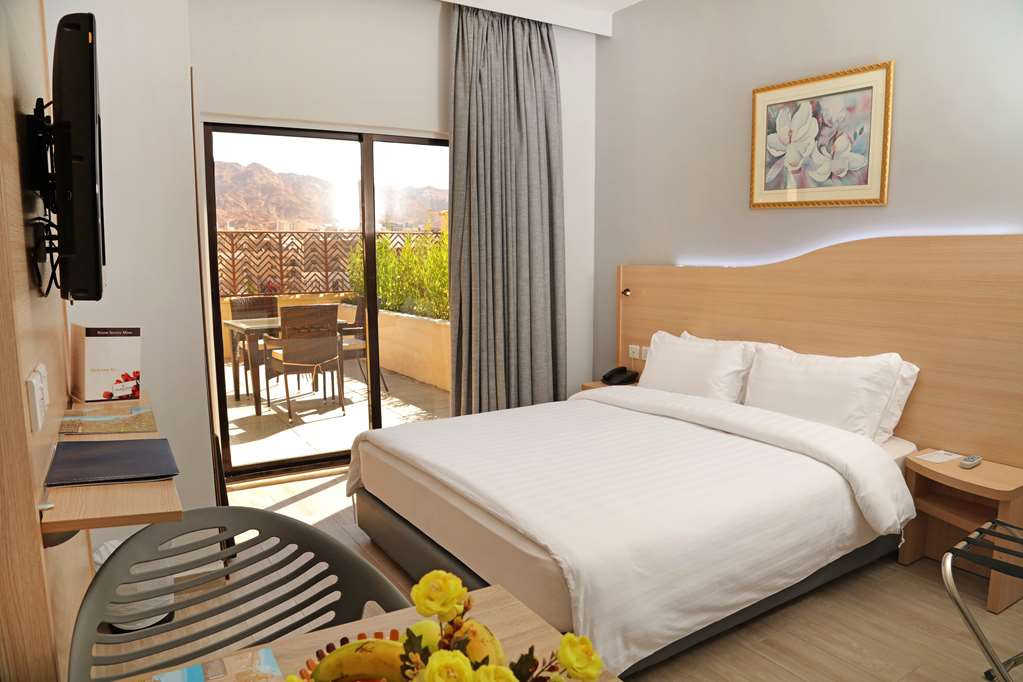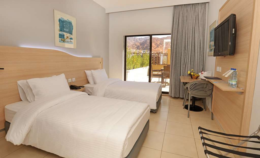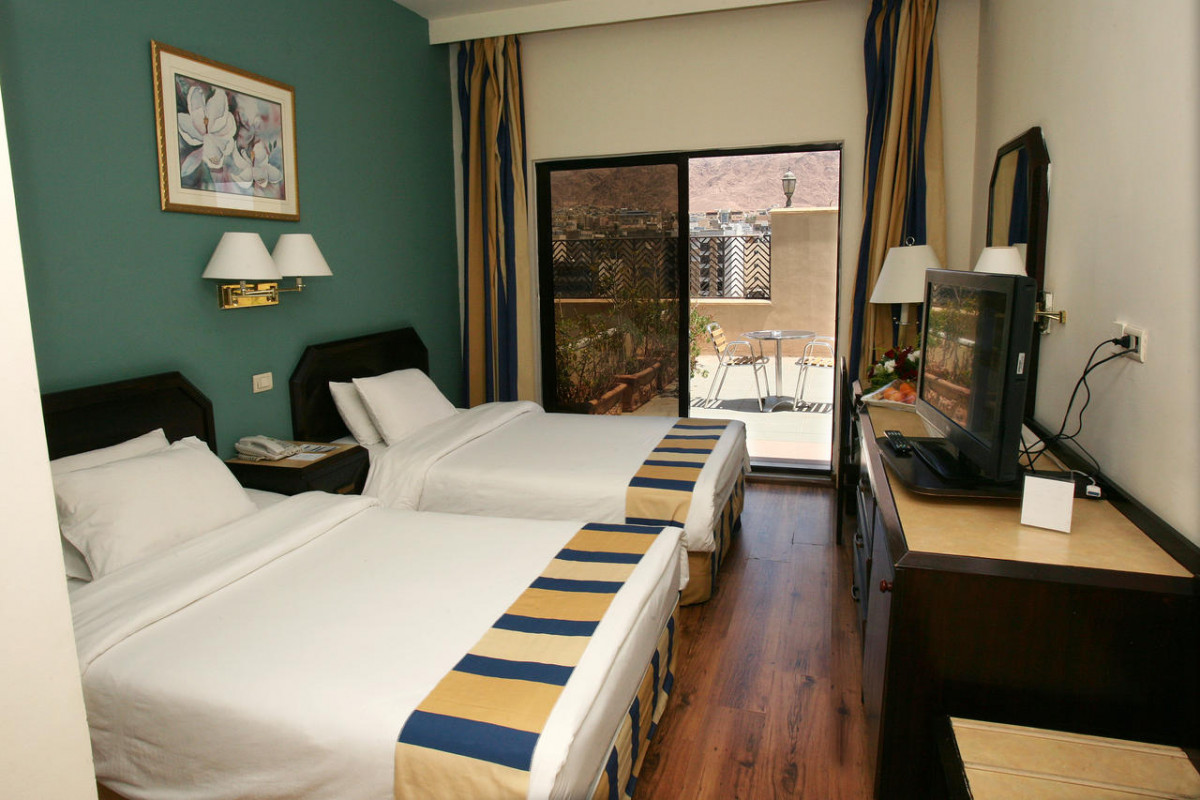 Останавливались в отеле в двухместном номере в 2013 году (по путевке) и в трехместном - в 2014 году ("дикарем"). Условия проживания хорошие. Уборка номеров ежедневная. В номере есть сейф и холодильник помимо прочих необходимых вещей. Перебоев с водой не было, горячая - всегда в наличии. Балконы есть только на 7 этаже. Питание хорошее - вкусно, обильно. На ужин напитки за отдельную плату, стоят дорого. Мы брали только минимум воды, а пить вечерний чай шли в кафе на улицу - и дешевле, и веселее. Бассейн при отеле небольшой, муж и дочь купались, я стеснялась, неудобно раздеваться на виду у всех, хотя бассейн огорожен глухим забором, но он примыкает к стеклянной стене гостиничной столовой, плюс там служащие постоянно ходят - задний двор. В отеле в четверг вечером на ужин - барбекю у бассейна. Фасад выходит на школу и мечеть, в четверг вечером молодежь любит по этой улице покататься на машинах и погудеть. Нам было интересно наблюдать за жизнью города, просыпаемся мы рано. Любителям тишины и долгого сна по утрам соседство с мечетью и школой может не понравиться. Советую на рассвете и на закате подняться на крышу, вид красивый (не могу сказать, всех ли пускают, мы ходили без спроса, никто не выгнал). До бесплатного городского пляжа и крепости - очень близко. На городском пляже женщины не раздеваются до купальника. Я купалась в трико и футболке поверх обычного купальника, переодевалась в палатке. У берега могут быть ежи, резиновые тапки продаются на каждом углу. Туристический пляжный клуб "Беренис" находится за городом. Туда по расписанию курсирует специальный автобус, остановки у определенных отелей, билет приобретается в отеле. 10 динар с человека (в стоимость входит проезд туда-обратно, полотенце, лежаки). На территорию "Берениса" запрещено проносить еду и напитки, даже воду, сумки досматривают. На территории клуба есть кафе, но цены высокие. Есть глубокий бассейн для взрослых и мелкий - детский. Территория красивая. В море лучше спускаться с пирса по лестнице. Достопримечательности в Акабе: греко-православная церковь (вглубь жилой зоны, надо ехать на машине); мамлюкская крепость и музей при крепости - около городского пляжа; музей национального наследия - около полицейского участка, на берегу моря, где пирс прогулочных катеров за площадью Арабской революции (где флаг); сам флаг - высота флагштока 136 метров; раскопки древнего города Айла - в сторону дорогих отелей, пешком недалеко, в сторону Израиля; в том же направлении - раскопки древнейшей христианской церкви; аквариум на морской научной станции далеко за городом - добраться можно только на машине, 15-20 минут езды в сторону пляжного клуба, за грузовым портом; катер с прозрачным дном курсирует в сторону коралловых садов за город; маяк; небольшой детский парк в районе полицейского управления за рынком; королевский яхт-клуб; по пятницам работает рыбный рынок - очень интересно!, также по пятницам устраиваются концерты; большая белая мечеть на берегу моря - главная мечеть Акабы - Аль Хусейн бин Али моск). В часе езды от Акабы - пустыня Вади Рам, в двух часах - Петра, до столицы Аммана - 5 часов, до пляжей Мертвого моря и Вифании (места Крещения) - 5 часов. Туристических и паломнических объектов в Иордании огромное количество - триста тысяч!!! Организованные экскурсии от отеля безумно дорогие, смело ездите с местными таксиста