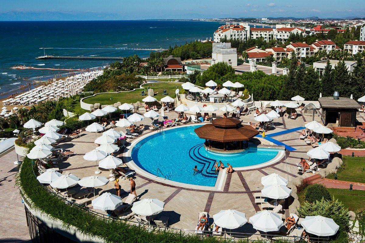 Отель для романтиков! Если для Вас головокружительный вид из окна дороже пятен на занавесках, то Вам понравится. Отель невероятно красивый. Это просто шедевр архитектуры. Грандиозное сооружение. Все без исключения прохожие останавливаются на променаде возле отеля и с открытым ртом рассматривают его. Но надо понимать, что построен он в 1997 году. Отель старый и потрёпанный. Реновации не было. Номера обшарпанные как и всё вокруг. Те, кому важен лоск, Вам не сюда. Имеет смысл бронировать ТОЛЬКО номера с видом на море. Тогда шикарный вид компенсирует всё! У нас был двухкомнатный номер Quin на 4м этаже. Номер очень большой, примерно 50 метров. Из спальни большой круглый балкон с видом на море, из гостиной огромная терраса с видом на море с лежаками, зонтом, столом и креслами. В номере всё работало, но это всё старое и обшарпанное. Смешно, но шампуней, бальзамов и гелей в упаковках нет, просто висят 2 дозатора с жидким мылом. Про питание: оно прекрасное! Я в Турции 26 раз. Точно знаю о чём говорю. Всегда есть курица, индейка, говядина, баранина, рыба, в том числе форель. Всё вкусное и свежее. Но горшке ни разу не сидели. Очень приличное сухое вино и шампанское. Отборные фрукты: персики, нектарины, груши, сливы, яблоки, виноград, арбуз, дыня. Фрукты просто шикарные: крупные, спелые, самые красивые. Много сладостей и восточных и европейских. Морепродуктов нет. Зато целый день везде вкуснейшие пакетированные соки. Особенно понравился персиковый. Кофе везде ТОЛЬКО зерновой, настоящий. Главный ресторан почти на самом верхнем этаже с огромной открытой террасой и шикарным видом на море. Не рекомендую Отель семьям с детьми. Он точно не детский. С колясками, больными ногами и ленивым не сюда. Огромное количество лестниц Вам не понравится. Пляж большой. Лежаки и зонты новые, всего хватает. Заход в море песчаный, но с крупными неожиданными камнями, которые надо обходить в воде. Контингент: Россия 10%, Турция 30%, Германия 20%, Восточная Европа 30%, ещё кто-то из Западной Европы 10%. Персонал работает на 4. Чистоты в отеле не хватает. Многовато окурков повсюду валяется, включая пляж. Грязноватый туалет возле бассейнов и бара в самом низу. Нас заселили без доплат в 10.30 сразу по прибытии, а при выезде бесплатно продлили номер до 14.00. Приезжайте с хорошим настроением, улыбайтесь всем вокруг, наслаждайтесь фантастическими видами и будет Вам счастье! А если хотите, чтобы "муха не сидела", то поезжайте в любой Барут, но он будет в 2,5 - 3 раза дороже.