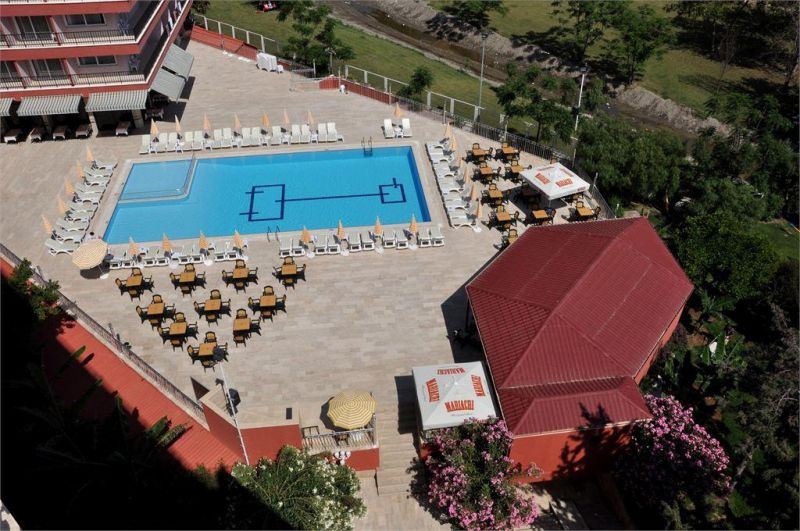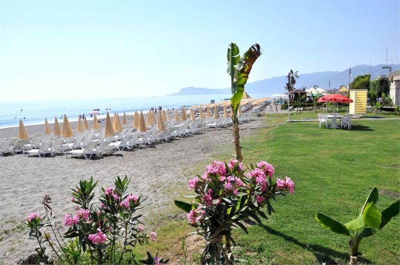Расположен в 135 км от аэропорта г. Анталья, в 10 км от центра г. Аланья, в поселке Махмутлар, в 50 м через дорогу от пляжа по подземному переходу.