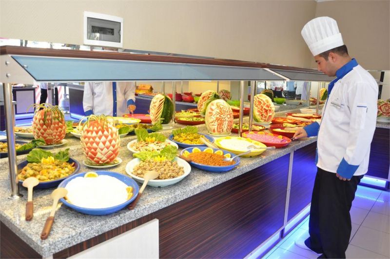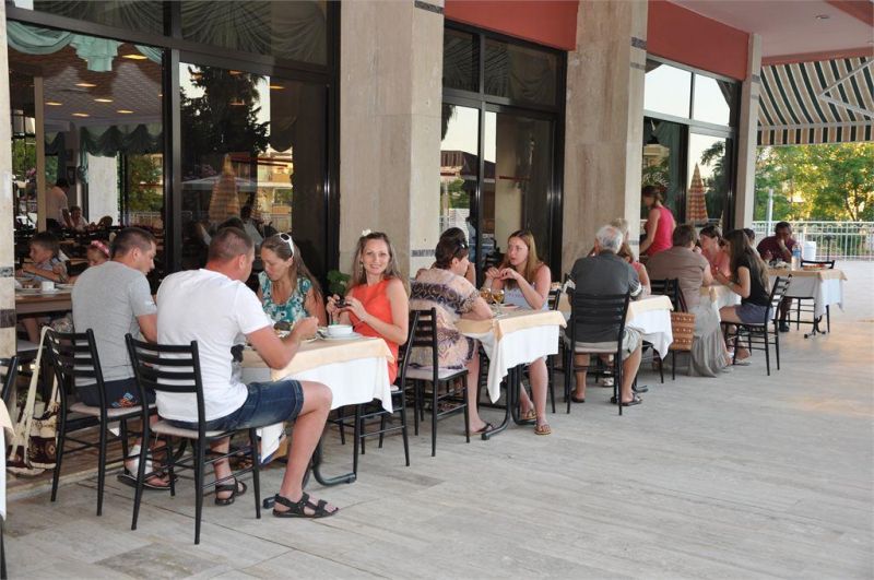 Все необходимое есть. Кормят норм. Голодными не ходили. Один вид мяса либо рыба либо что то соевое, но тоже сносное. Один вид фруктов. Два вида супа. Вкусный турецкий хлеб. Много овощей и зелени. Много варенья. На завтрак нет хлопьев. Только один вид яиц. Жареное вареное либо омлет. Очереди были, но с начала обеда либо ужина. Уборка столов сразу после каждого. Никаких мух и т.д. Есть теннис. Есть сауна беспл, но заранее просить надо, чтобы прогрели. Есть два бара. На пляже бара нет. Вай-фай беспл. Но в номерах не у всех ловит. В баре беспл вино пиво раки, джин, кола, спрайт. Платных напитков нет. Сока свежевыжатого в баре нет. Есть детская площадка с качелью и лазелки. В номере савдепия, но там и не находишься. Большой балкон со стульями. Холодильник, кондер есть. Уборку делают даже без доллара. Бассейн чистят каждый день. Персонал не отличается особой вежливостью, но и не хамят. Пляж, лежаки есть, зонты есть. Вход в море не очень. Без тапок изрезали ноги. Если смотреть на море, то пройдя немного вправо рядом у отеля гораздо лучше вход - плиты, но там кусаются рыбки. Два раза в неделю приезжает огромный рынок. Вещи брать не стоит. А вот фрукты, овощи очень дешево и свежевыж. соки на рынке супер. Деньги лучше иметь лиры выгоднее. Особенно на рынок если идти. Там местное население долго считает по переводу доллара в лиры, тк цены все только в лирах. В целом отличный отдых. Анимация для детей и взрослых каждый вечер.