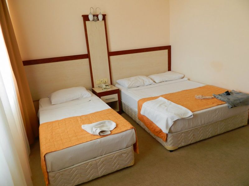 Отдыхали в сентябре 2014 г. Сколько ездили на отдых, всегда приезжали с хорошим настроением, Но этот отель, УЖАС, НЕЛЬЗЯ ТУДА ЕХАТЬ. Есть просто было нечего, на стойках вместо еды фарфоровые фигурки, грязь, антисанитария, бутылированной воды нет, почти все в отеле ходили отравленные, постоянная диарея, рвота, темп. 38, в баре ужасное вино, пива нет, Даже сахар без оберток, ничем не покрыт, не ресторан, а грязная столовая. В номерах в ванной, сантехника в плохом состоянии, ползают черви. Пляж нельзя назвать пляжем: булыжники и старые мостки на которые страшно вставать. Не отдохнули, а намучились!