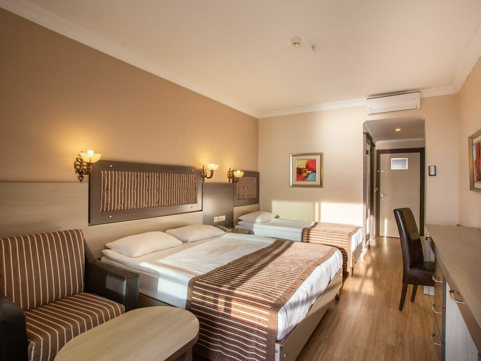 Отдыхали в мюле 2024. Отель на 4! На ресепшене сразу катают на доплату за улучшенный номер, настаивая!!! Пляж и отель чистенький. Уборка каждый день. Еда хорошая. И красная рыбка ежедневно. К еде вообще претензий не было. Прекрасно. Но никаких развлечений абсолютно. Ни дискотек, ничего. Алкоголь полнейшее г…. Пить не возможно. Разведенка. Мест на пляже не хватает, у бассейна тем более. Вай фай ловит идеально в холле, это плюс. Ехать до отеля с аэропорта 4 часа!!!! Вернусь ли вновь? Нет