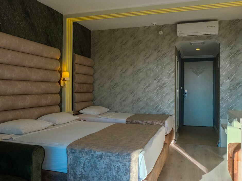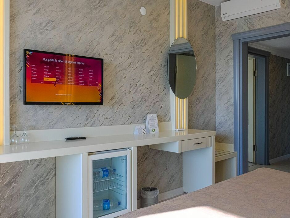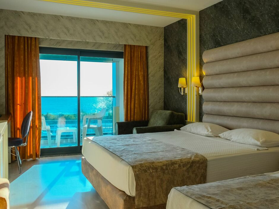 Отдыхали в августе 25-го года впервые В Турции. Двое взрослых и ребенок. Отель выбирала очень долго и привередливо, тк хотелось хорошо отдохнуть. За весь отдых не было ни тошноты ни рвоты ни у нас ни у ребенка, тк все свежее и вкусное. Отель нам очень понравился: еда вкусная, разнообразная – по еде просто всё замечательно. Пробы блюд берут для проверки каждый день в лабораторию. Давали красную рыбу и Раков и много овощей и фруктов. Море красивейшее, идти через переход под дорогой. На пляже есть бар с напитками, картошкой фри, ингредиентами для сбора бургеров, арбузами. Уборку делали каждый день: выносили мусор, протирали полы. На ресепшене русскоговорящие Нелли и Елена решали все вопросы и проблемы очень быстро. Очень вкусные десерты и разнообразные! Отель нам понравился, отдых нам очень понравился — отдохнули замечательно, очень довольны. Постельное бельё всегда чистое, меняли почти через день, скидывали на пол полотенца – всё сразу меняют, постельное также меняли очень часто, чаще чем нужно даже было. Пляжные полотенца меняют за 1 евро. К русским относятся хорошо, никаких нареканий нет у персонала. Интернет работает бесплатно в лобби и максимум тянет до второго этажа, ещё ловит немножко у бассейна. Бесплатное мягкое мороженое из аппарата дают с четырёх до пяти. Еще дополнительно кормят выпечкой около 15:30 до 17:30. Кофе, чай все в доступности. Вода стоит в холодильниках в лобби и на баре на пляже Всегда в достатке. Отдыхом очень довольны. В море есть небольшие камни, мы брали коралки и в итоге ими не пользовались, тк купались с пирса и есть места для нормального захода в море с берега. Прозрачное и чистое море, видно рыбок которые плавали у пирса. Ездили на экскурсию все в евро, поэтому лучше берите евро, в долларах и лирах выходит дороже по курсу. Деньги меняли у отельного гида, у нее выгоднее курс лиры. Рядом с отелем есть мигрос, там есть за адекватные цены подарки и сладости. Чуть подальше еще один мигрос только побольше. Анимация вечерами приезжали артисты и разные с интересными программы. В общем рекомендуем отель для прекрасного.
