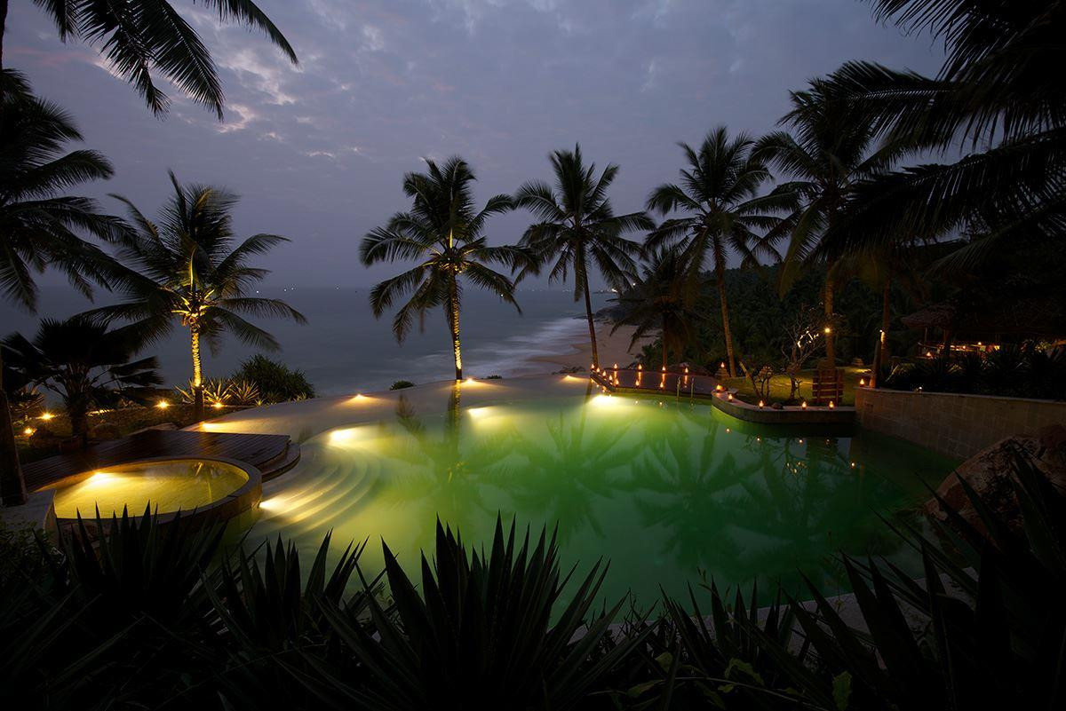 Стильный бутик-отель расположен на берегу океана, утопающем в зелени кокосовых пальм на скалистом возвышении над берегом. Дальше по берегу с ним соседствует курорт Bethsaida Hermitage. Территория отеля красиво оформлена, среди пальмовой рощи, украшенной каменной скульптурой, бегут дорожки, ведущим к 31 коттеджу, все коттеджи выполнены в традиционном стиле керальских богатых особняков: здесь традиционно используется много деревянной отделки и керамики. Главный корпус оформлен, как индуистский храм. Здесь на открытых террасах стоят плетеные кресла и покрытые гранитом столики, за которыми удобно медитировать, наблюдая, как океанские волны снова и снова накатывают на утес, украшая брызгами лазурное небо. Ресторан и бассейн отеля находятся на площадке с замечательным видом на океан. Отсюда же в укромную песчаную бухту, где можно насладиться купанием в океане, ведет небольшая лестница. Благодаря своей чарующей уединенности, а также приверженности к эко-стилю, курорт завоевал заслуженную популярность среди обеспеченных европейцев. «Niraamaya Retreats - Surya Samudra» - это прекрасная возможность не только отдохнуть, но и получить высококлассное аюрведическое лечение в абсолютной гармонии с природой.