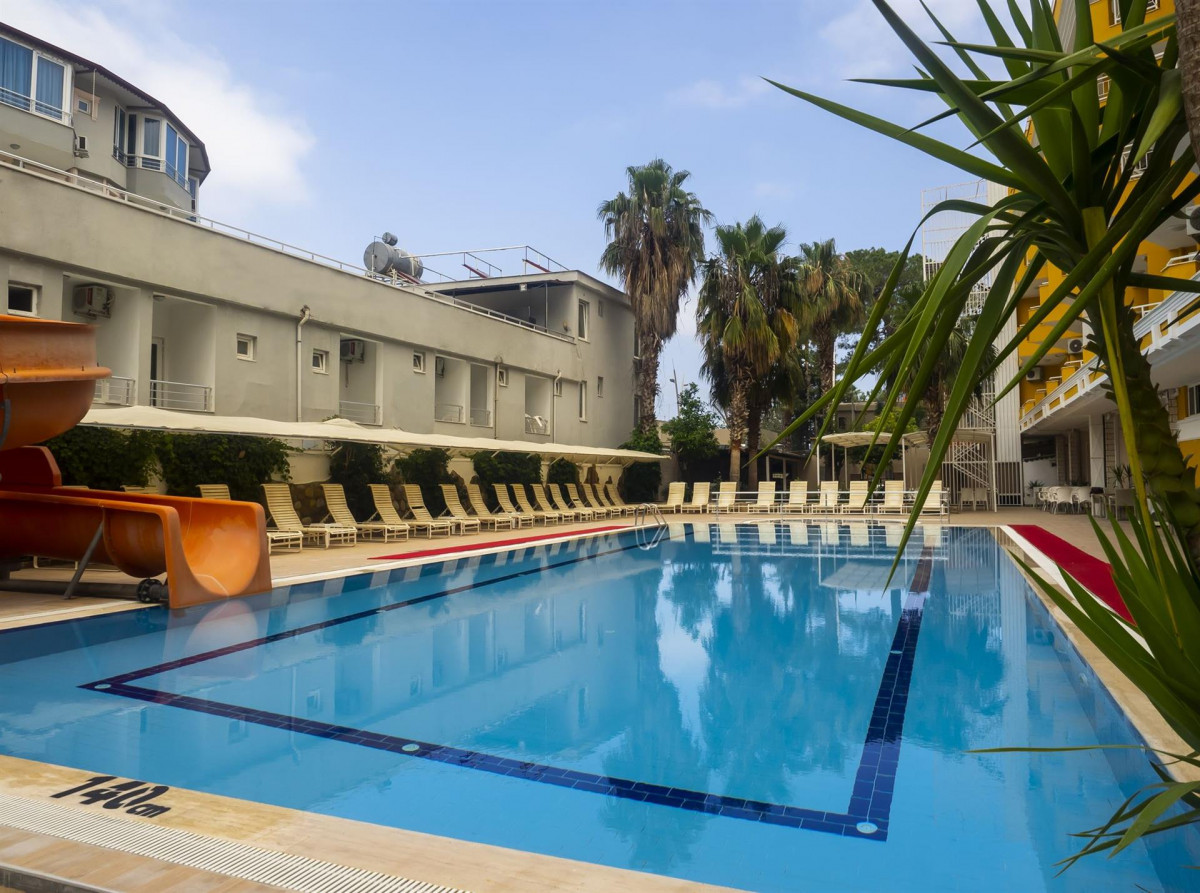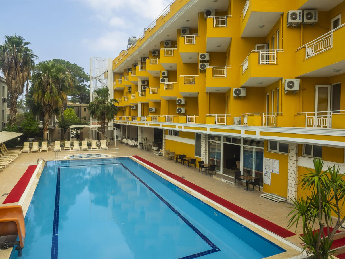 В отеле отдыхали в июле 2022 г. Отель нормальный, персонал тоже, кормят хорошо, особенно в обед и ужин, разные салаты, для детей картофель фри, наггетсы, из фруктов был арбуз, к концу давали сливы и абрикосы. Есть бассейн, одна горка, бассейн чистый, постоянно фильтруется. Номера обычные, для любителей шика не подойдут. Море рядом, идти 5 минут, чистое, галька, лучше брать обувь для плавания. Шезлонги бесплатно, но если возьмёшь на ресепшене талончики, т.к. по пляжу ходят и собирают деньги (15 лир шезлонг) отдаёшь талончик и загорать можно спокойно. Рядом есть супермаркеты, где принимают карты мир, что тоже очень удобно, т.к. цены там дешевле, чем у уличных торговцев. Из минусов: платный wifi- 10 долларов 7 дней, и платный утюг - 2 доллара. А так в целом все понравилось!