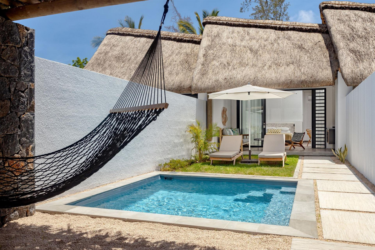 Villa (60 кв. м., макс. 2 взр.). Двуспальная кровать, ванная комната с душем, меблированная терраса, гамак, небольшой персональный бассейн и садик (16 кв. м.), халат, зеркало для макияжа