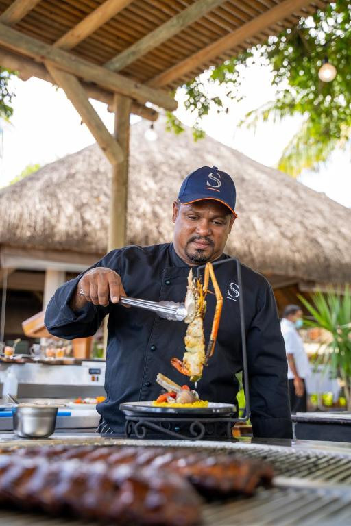 На западном побережье Маврикия; на пляже Флик-ан-Флак; в 28 км от Порт Луи; в 49 км от международного аэропорта.