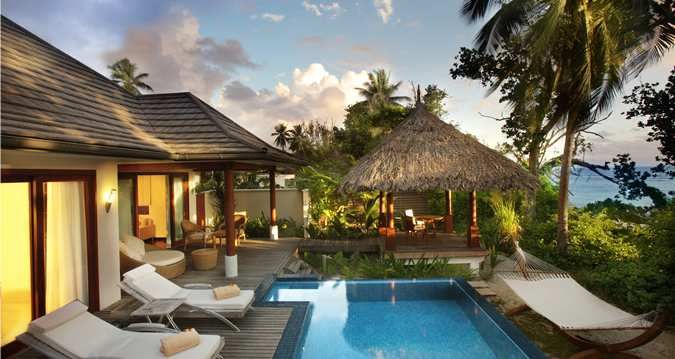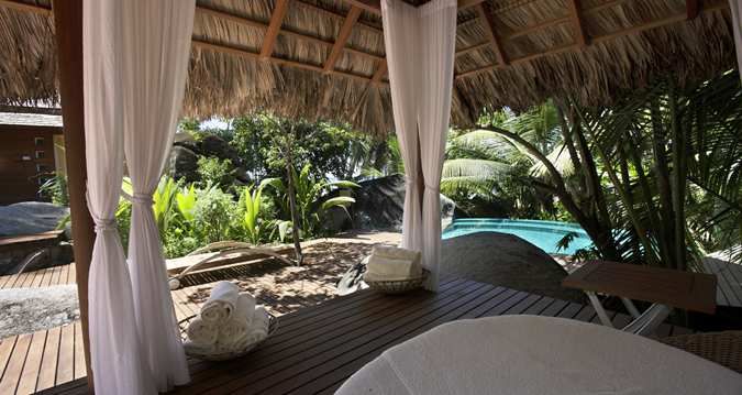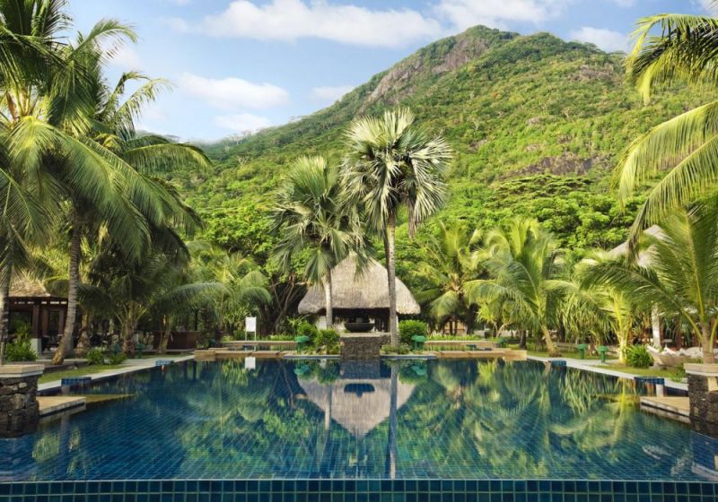 На острове Силуэт, в 20 км к северо-западу от острова Маэ. Трансфер: 20 минут на автотранспорте от аэропорта ос-ва Маэ до причала + 45 минут на лодке. Перелет на вертолете (15 минут) — по запросу.