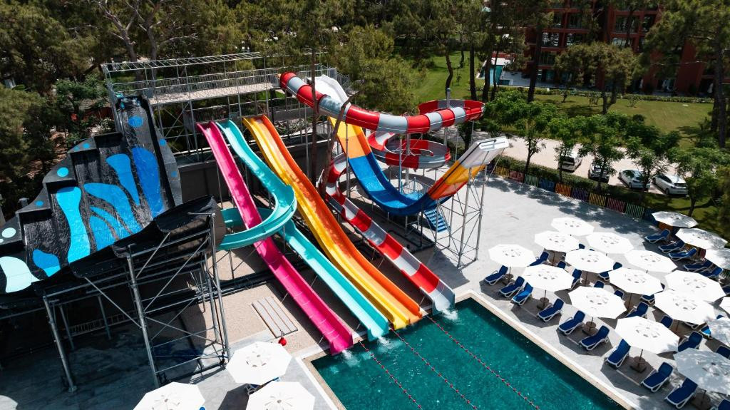 Отель понравился, у нас хороший номер был на семью из 4 человек. Еда разнообразная вкусная, в любое время. Море чистенькое красивое. Аквапарк детям понравился. Классно что он отдельно от основного бассейна. Мы туда приходили просто позагорать а дети побегать покататься. Путевка нам обошлась в 360 тыс с перелетом из Мин. Вод. в начале августа в 2024 году. Я считаю что это дорого для Турции. Был минус, люди которые снимали номера с отдельными бассейнами на -1 этаже. Жаловались что запах сырости, мы тоже его чувствовали на -1 этаже.