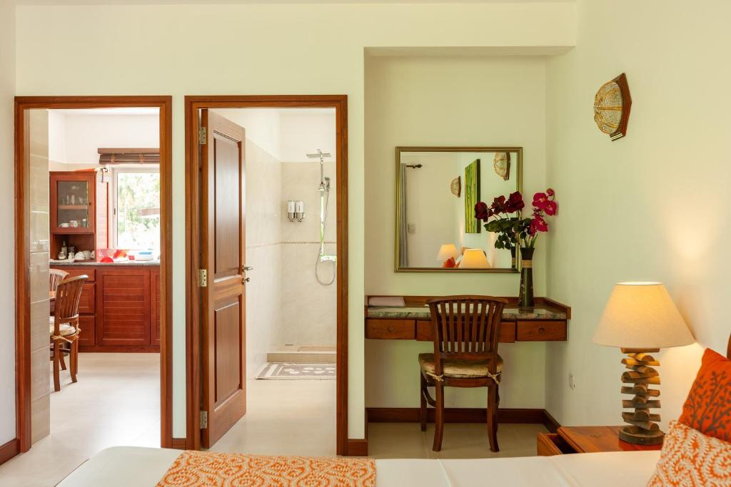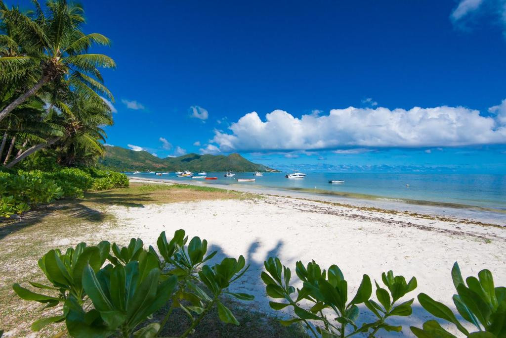 На острове Праслин. В пешей доступности – супермаркет, кафе, автобусная остановка. Время в пути до аэропорта Праслина – 4 минуты на автомобиле, до пристани – 15 минут на автомобиле.