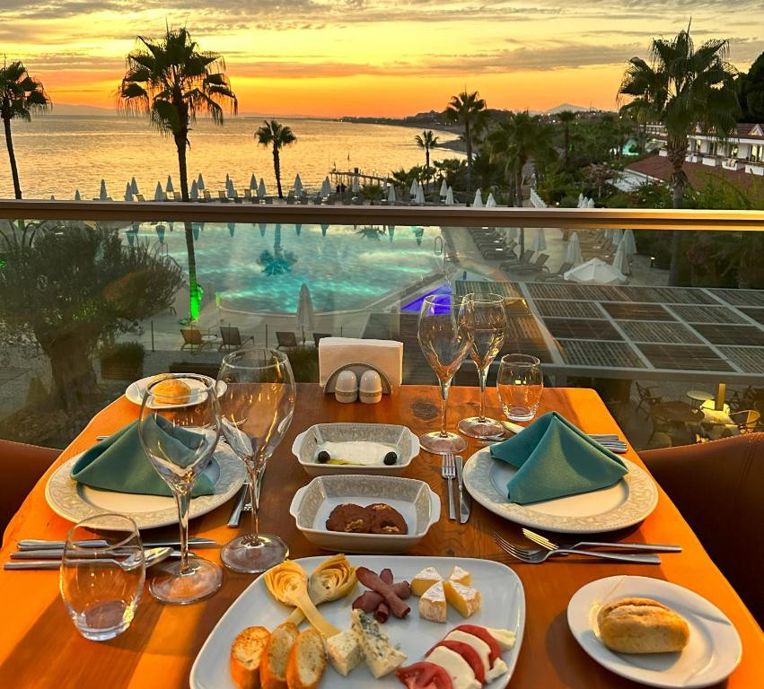 Отель на пятизвездность точно не тянет. Столовых приборов не дождешься, приходилось искать самой,посуда частично грязноватая, еда все 7 дней была одинаковая,выбора мало, рыба на гриле всегда одного вида, никакой дорадо,сибаса как в других пятёрках я так и не дождалась. Из плюсов это отдельные бунгало и зелёная территория,но ито, заявленого вида на море не было,по факту был получен вид на бассейн. QR коды,по котором делаешь заказ,оказывается не везде работают и можно зря просидеть прождать заказ,думая что тебе уже готовят еду.