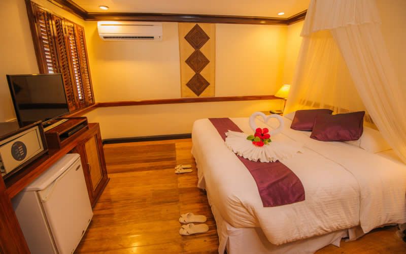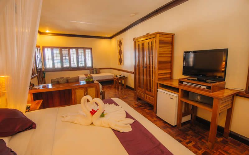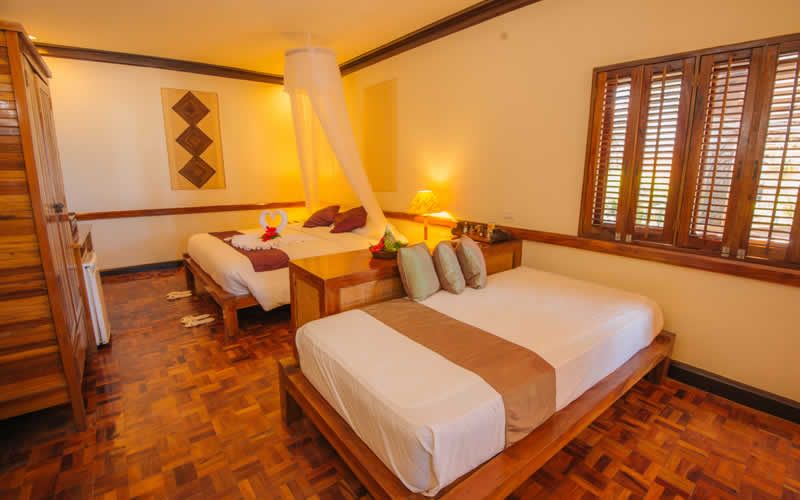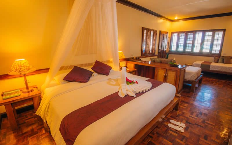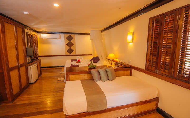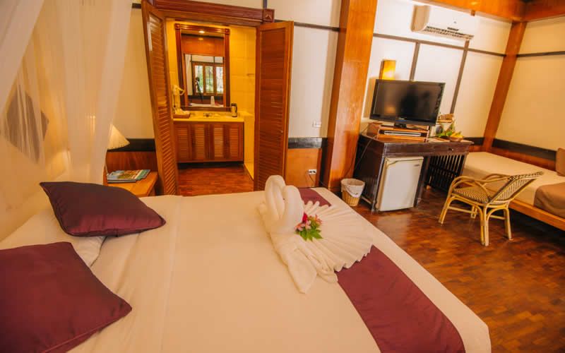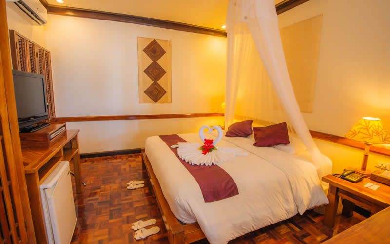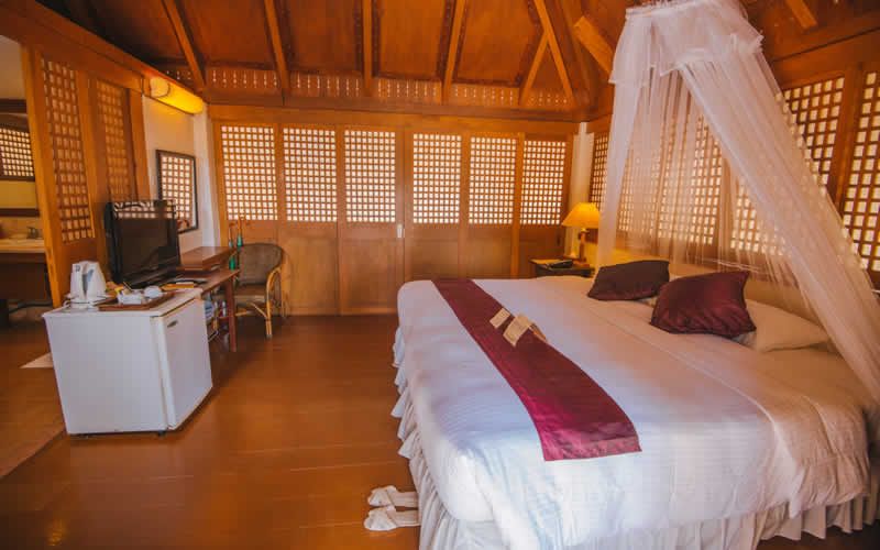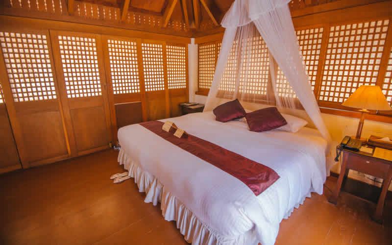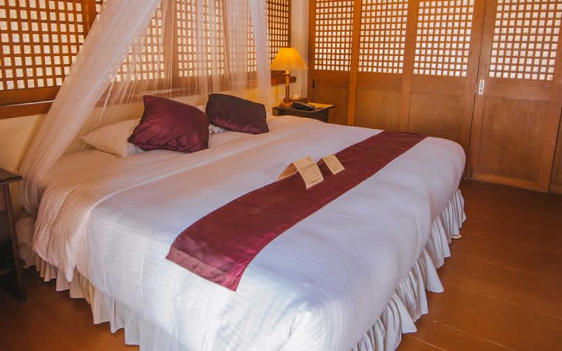 Очень уютный и романтичный отель. Размещение предлагается в двухэтажном корпусе или в деревянных бунгало. Отель стоит прямо на пляже. Прекрасный выбор для молодожен.