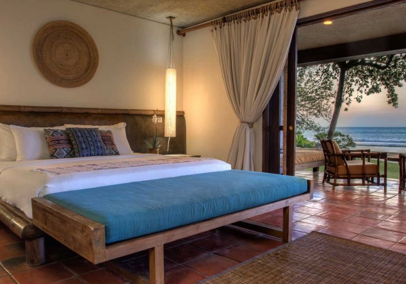 Ananda Segarra Beachfront Villa (вилла с одной спальной комнатой с двуспальной кроватью, большой террасой с кроватями и зоной отдыха с журнальным столиком и стульями, видом на океан )