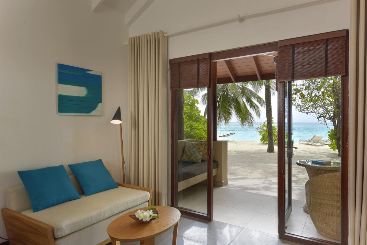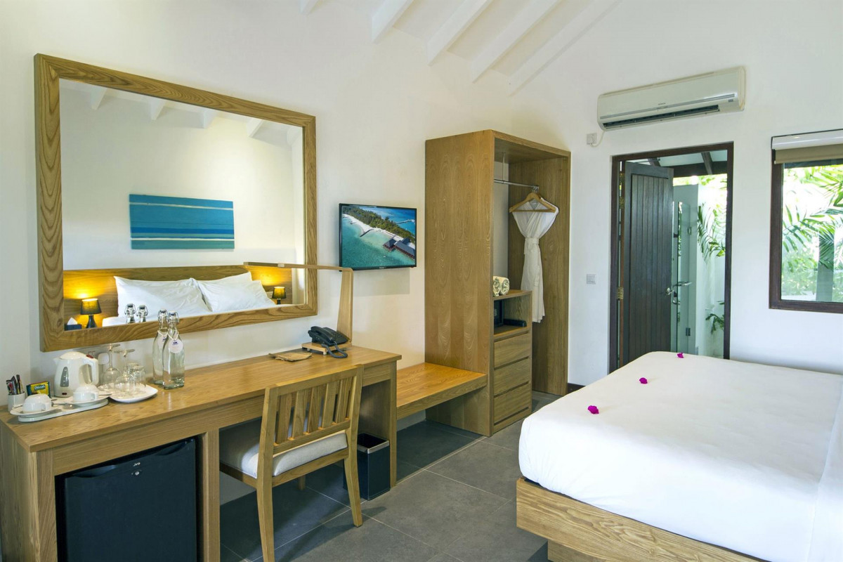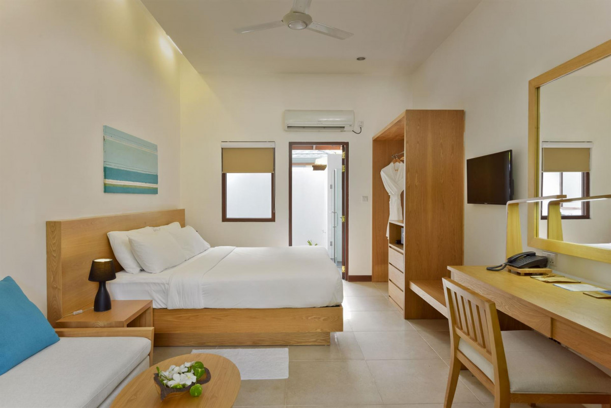 Очень долго искала отзывы по этому отелю. Но к сожалению за 2015-2016 почти ничего нет от русских туристов. Отель действительно уже не 3*, а после ремонта 4 . Выбирали отель для годовщины свадьбы, чтобы было спокойно и комфортно, к своему стыду признаюсь, что искали где меньше соотечественников. Так же выбирали трансфер на катере, не на гидросамолёте. Забронировали номер супериор бич на все включено.Забронировали и не прогадали, остров просто выше всех ожиданий... Сам номер довольно простой, без изысков. Все в пределах нормы, чисто и удобно для проживания. Хороший удобный матрас для сна. Есть чайник, мини-холодильник, всегда обновляют чай (4 вида*2), кофе, сливки, сахар. Санузел и душ на улице, отгорожен толстой стеной, сверху пустота, видно деревья, небо... Но все очень продумано вас никто не увидит и не услышит. Бесплатный wi -fi в номере, с хорошей скоростью. Наше бунгало 381 было настолько близко к воде, что во время приливов казалось что ещё чуть -чуть и ты дотянешься рукой. Терраса с круглой кушеткой, где свободно поместятся лёжа три человека, столик и два кресла. Все эти приятные мелочи очень радовали нас весь отдых. Когда другие гости отеля лежали на шезлонгах и пытались найти тень, мы лежали на своей терассе в 10 метрах от моря и наслаждались безумно красивыми видами океана. Весь отдых мы плавали и восторгались подводным миром вокруг острова. Он очень красив. Огромное количество различных цветных маленьких рыбок, огромных рыб различных форм, я до сих пор не до конца узнала их названия. Ездили так же на катере, который предоставляется бесплатно. Катер останавливается в открытом море, одеваете маски и ласты, прыгаете в воду и конечно просто восторг от увиденного. Диковинные рыбы, черепахи, кораллы, морские огромные звёзды. Конечно мне первые минуты было немного жутко от ощущения глубины, но потом доплыла до кораллов и страх прошёл. Плавали в открытом океане не дольше 30 минут , потом свисток, все собираемся и плывём обратно на остров. Питание и бар. Для нас работал ресторан Самуга и Неви бар. Для проживающих в водных виллах есть свой ресторан, если честно он не такой уютный. Голодными точно не будете. Есть мясо, курица, морепродукты. Есть блюда европейской кухни и конечно индийской со специями и карри. Всего не много, но достаточно. На завтрак, обед и ужин есть повар, который при вас жарит яйцо, рыбу, мясо и курицу. Очень хорошие мною любимые супы пюре. Вкусная выпечка, так же жарят блины, вафли, бананы в тесте и тд., все при вас. На завтрак из напитков чай и кофе, которые разносит официант. Соки не натуральные на шведском столе. На обед и ужин по все включено предлагают вино, пиво и воду. Всегда дают чек расписаться, даже если это по системе все включено. В баре делают коктейль дня бесплатно для все включено, но мы заказывали коктейли платно от 5-7 долларов. Пиво, ром, виски, вино, кола, содовая все бесплатно на все включено. Так же в баре брали в номер содовую в маленьких бутылочках, очень удобно. Дают без проблем хоть сколько. Брали в номер напитки, но в пластиковых стаканах и бокалах, практически нет отличия от стекла. Пиво в номер давали в банках, но обязательно открывают банки, такой порядок. Все нормально качества, конечно не ВИП , но сносно, довольно не плохо. Так же время чая с 16:30 до 17:30. Предлагают бутербродик, пирожное и чай, кофе на выбор. Бассейн. Сделали новый ба
