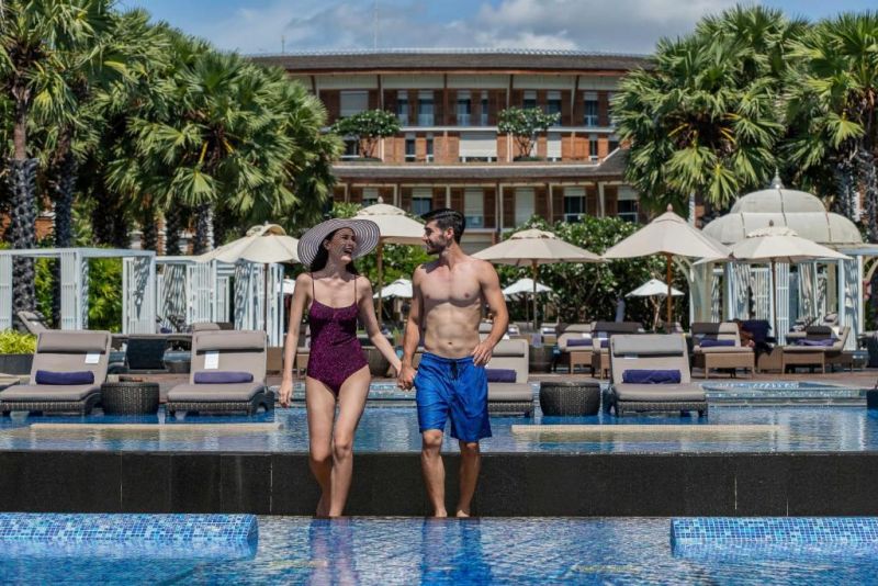 Отель расположен непосредственно на берегу пляжа Хуа Хин. Дорога от аэропорта Бангкока займет около 2,5 часов (230 км), от аэропорта Хуа Хина — 15 мин. Размещение предоставляется в 2-х корпусах: Beach Wing и Blue Port Wing.