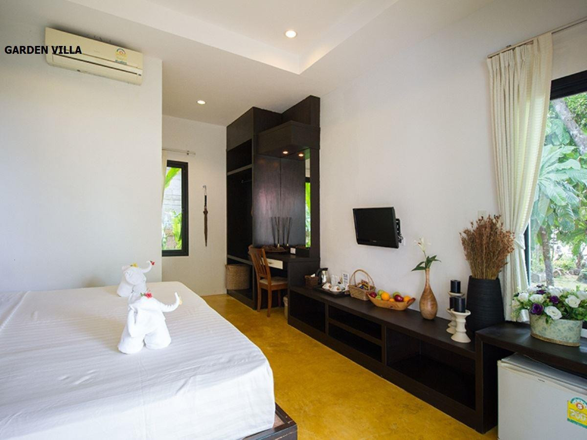 GARDEN VILLA: 5 garden villa (26 кв. м, 4 dbl/1 twin, макс. 2+1 чел., отдельностоящие 1-эт. бунгало, по восточной границе отеля, обновлены в 2016 г., вид на сад)