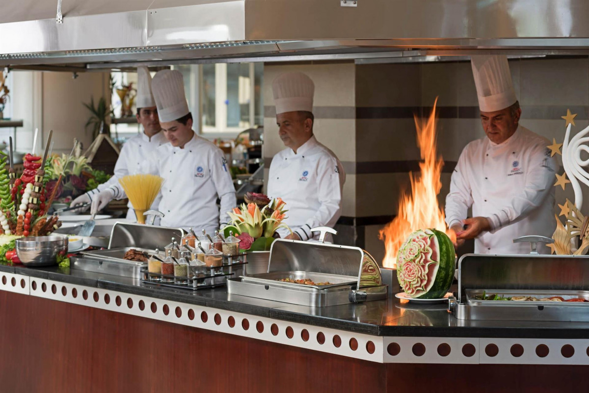 Отдыхали в октябре 2024г . отель не плохой. В Турции отдыхаю уже раз 20,т.е. есть с чем сравнить. Все очень не плохо ,но питание на тройку. В меню картошка фри, пюре,рис просто отварной ,макароны. За 14 дней ни разу не было тушеных баклажанов или просто рагу из овощей. Рыба скумбрия-на любителя, куриные стейки жесткие и не вкусные, мясо козлятины или баранина мелкими кусочками тоже на любителя. С овощами просто беда, огурцы помидоры, про перец я вообще молчу, кто успел тот и съел. Я не привереда в еде, но в Турции без овощей как-то печально. Напитки это 5. Не разбавлены и 24 часа.