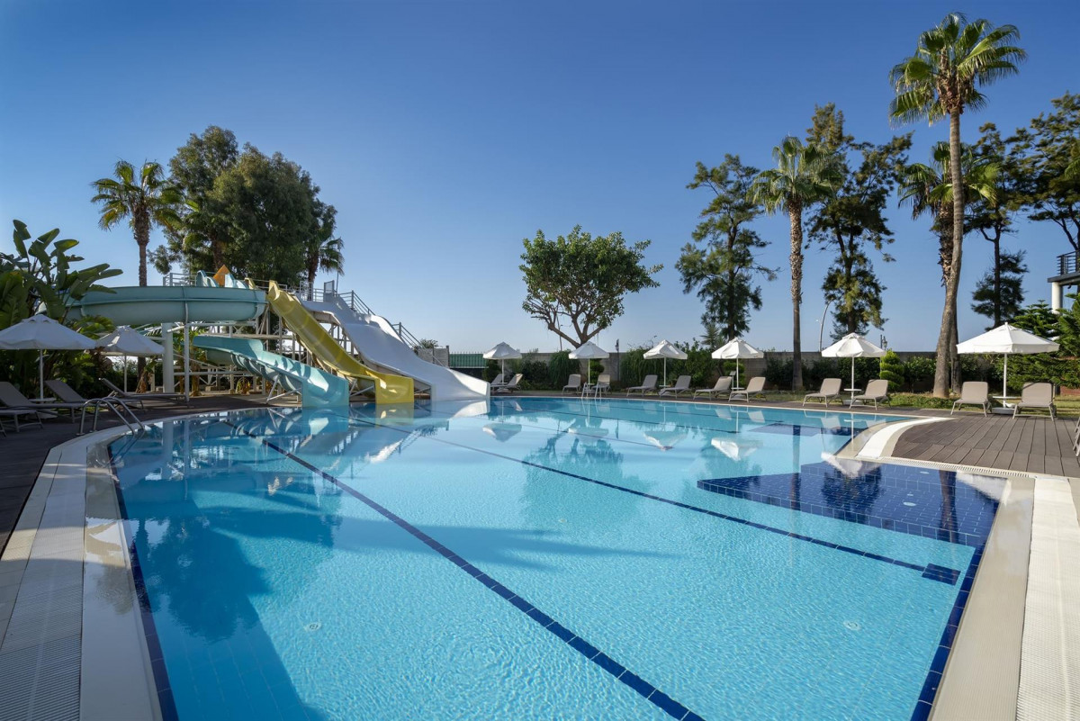 Отдыхали с 31 июля семьей, двое детей подростков. В целом отель понравился, персонал очень старается, хорошее отношение к гостям, особенно Махира, очень приятная женщина, которая ответит на любой вопрос, поможет. Номера убирают ежедневно, но скажем, не тщательно, выносят мусор, пополняют бар, меняют полотенца. Еда разнообразная, голодным не останешься, основной ресторан с 7 утра, бары возле бассейна и на пляже, напитки есть местные и импортные. Очень понравился ресторан аля’карт, выбрали итальянский и не пожалели, все вкусно и уютно. В бассейне практически не были (есть три горки, для разнообразия можно и взрослым прокатиться), в основном на пляже, море было шикарное, только раза два штормило, вход с левой стороны от пирса, очень даже комфортный. Мы доплывали до пирса, оттуда дети с удовольствием ныряли. А самое приятное, что от отеля несколько раз в день ездит автобус в центр, мы ежедневно этим пользовались, гуляли по городу или ходили в ТЦ. Рядом есть все - Мигросы, аптеки, разменники. Рекомендую отель, и сама бы поехала с удовольствием ещё раз