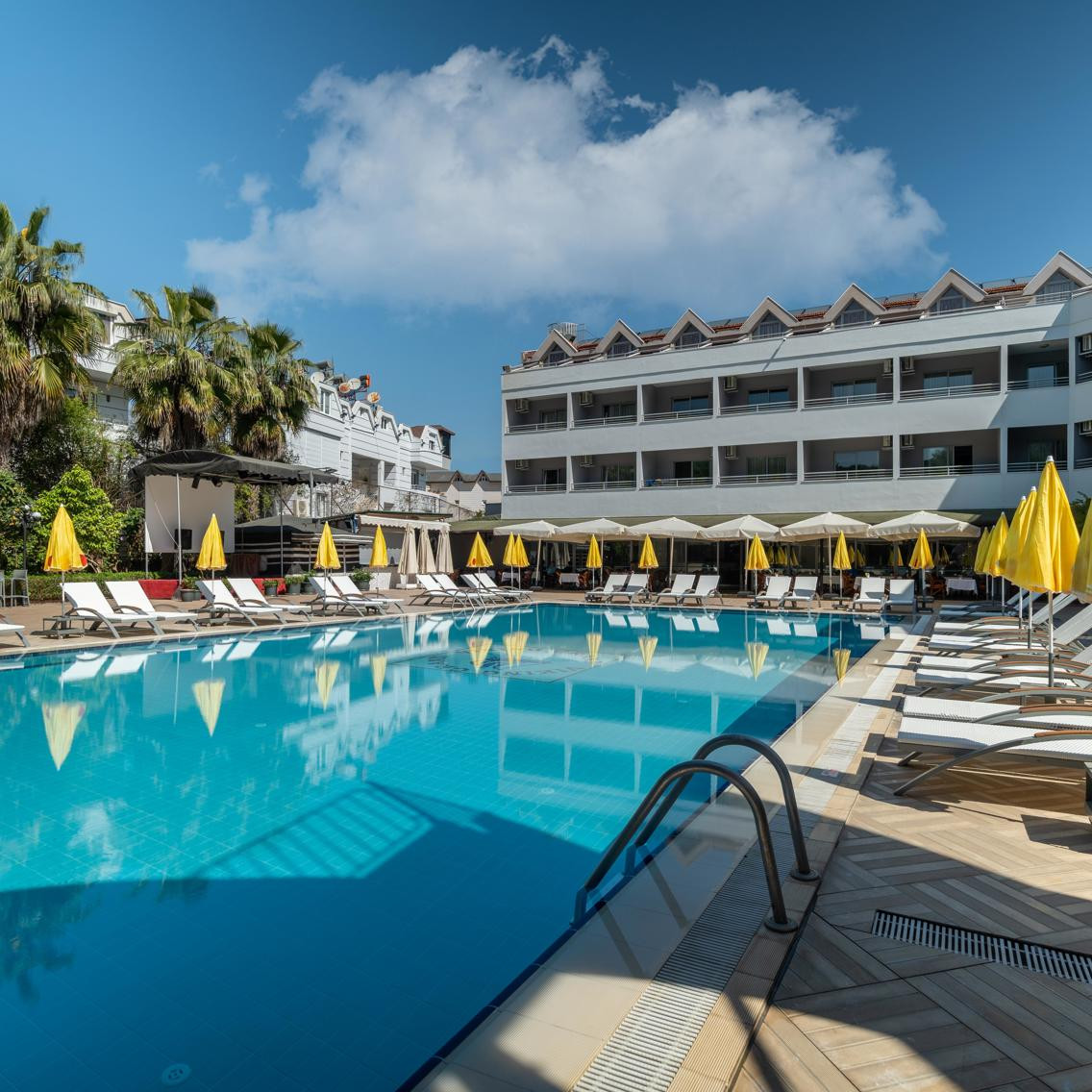 Отдыхали с семьей в этом отеле с 27 сентября по 9 октября. Из плюсов: очень чистые номера, отзывчивый и русскоговорящий персонал, убирали в номерах каждый день, разнообразная еда! В общем, понравилось все кроме пляжа, он очень грязный, вход в воду галька крупная, а мостик, по которому можно заходить в море, был сломан и за все это время починить было некому!! В общем, чистый, уютный тихий семейный отель.