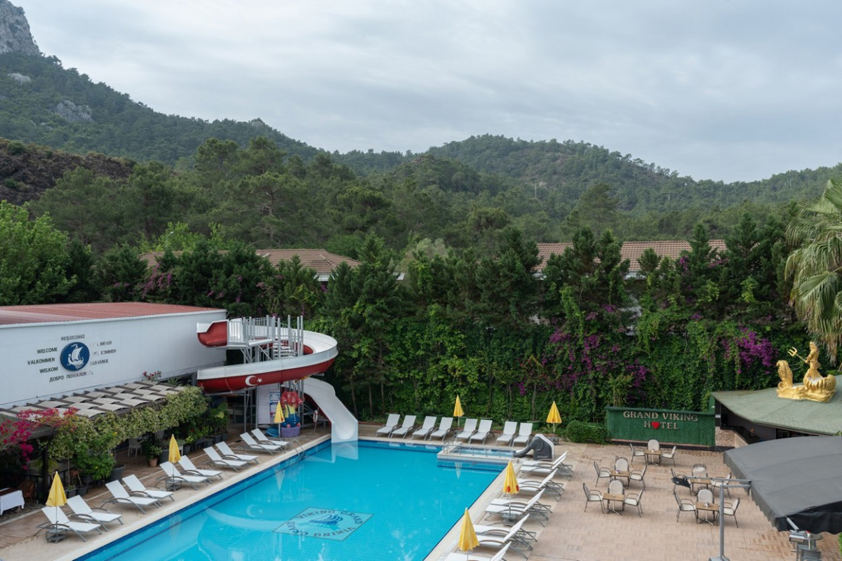 В отеле прекрасный персонал .Все сотрудники отзывчивые, внимательные, душевные.На рецепции Евгения решает все вопросы,Работающие там мужчины очень вежливы , приветливы и отзывчивы. Расположение отеля - это его плюс .Рядом с хвойным лесом.Чудесный чистейший воздух., Тишина. Отель в шаговой доступности практически от всех нужных мест-центра. базара,лимана, набережной .Особенно для любителей прогулок, Многие ходят в горы , в лес .Красота необыкновенная В отеле очень хорошее питание, тем более с учетом, что это четверка.Разнообразно и вкусно.. Птица ,рыба, мясо. Салаты, соления,зелень в ассортименте. Большой выбор сыров, вкусные и свежие. Колбасы не пробовали, но выбор большой .Всегда вкусные арбузы, дыни. апельсины, груши, яблоки. Гезлеме 2 раза в день, айран есть всегда. Кофе и какао в трех аппаратах. Большой выбор турецкой выпечки, тортики, пирожные. Великолепная выпечка на завтрак. Много овощных блюд, очень вкусных. Пиво, вино, напитки .Главное-качество продуктов, приготовление и чистота .Номер стандарт просторный, большой балкон, есть холодильник, чайник. Убирают ежедневно, чисто, меняют полотенца. Доливают гель и мыло . В отеле туристы из Европы, России, Турции, Казахстана. Днем ненавязчивая музыка, по вечерам - иногда и живая музыка, вокал. Все цветет и пахнет .Также есть автобус . Комфортно, свободно, отличный водитель.До пляжа и лимана , на набережную ехать несколько минут .
