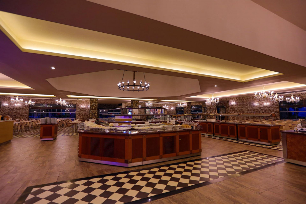 Отель очень скучный. Группа аниматоров во главе с Жужей не заинтересованы своей работой вообще. Днем аниматоры проходят мимо русских "не здрасьте не насрать", нас нет, пустое место. Тучки небольшие на небе, сразу разбирают пирс. Причем соседние отели свой пирс даже не трогают. Заход в море ужасный, нет перил/поручней. Даже коралки плохо помогают. Часто готовят форель, салаты из креветок и кальмаров. Из мяса - кура, утка, индейка, говядина. Напитки нормальные, не травились ни разу. Водка, кстати, у них "Пушкин". Во как. Мороженое только на ужин. Три ресторана аля-карт. Рыбный ерунда, обходите его стороной. Монгольский ничего так, посетить можно. В а-ля картах либо сонные медлительные официанты, либо носятся как перепуганные коты. Полотенца выдают и меняют у бассейна. Территория большая, зеленая, красивая. На обеде/ужине часто форель, морепродукты. Будьте аккуратнее с салатом из морепродуктов, у нас и ещё некоторых людей было отравление. Несколько дней не выходили из номера, полоскало. В этом отеле второй раз и последний, возвращаться в него больше не хочется. В 2024 было намного интересней и веселей.