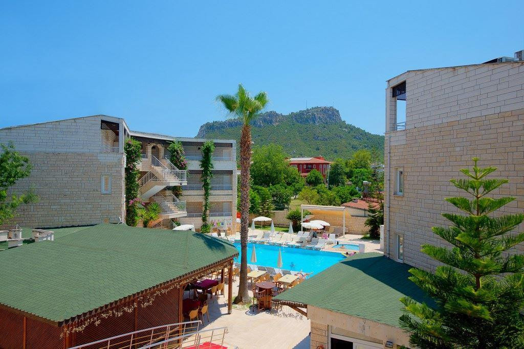 Отдыхали в отеле в начале сентября, отель приятный, чувствуется что за ним следят и периодически проводят реставрацию номеров и территории. Кормят вкусно, не смотря на одинаковый набор продуктов, всегда было все свежее, на обед и ужин менялись, курица, рыба, котлетки, тушеное мясо. Персонал отеля вежливый, ребята в столовой-ресторане всегда чистые и ухоженные, знают свое дело, стараются. Номер был на первом этаже, с балконом, в номере из душевых принадлежностей только жидкое мыло. За наш недельный отдых, в номере протирали пол и меняли полотенца. Мы не сорили и нам этого было достаточно. Территория отеля не большая, но приятная, вся локация вокруг бассейна, там же работает бар (в баре напитки подают в стекле). Из напитков кола, сок типа юпи, пиво, вино сухое, джин , ракия. Есть импортные алкогольные напитки и коктейли за плату. При отеле есть спа салон, кто ходил на массаж, были очень довольны. Есть не большой тренажерный зал. Анимации нет, вечером включают музыку и если есть компания желающих потанцевать, это приветствуется. Пляжа своего нет, но можно за ранее купить лежаки на городском пляже по 15 лир с человека, это дешевле чем на месте платить. Мы узнали, что есть дикий пляж (Песчаный Пляж MOONLIGHT) и ходили туда, там и заход в море более приятный и людей в несколько раз меньше, чем на городском, идти 2 км. Резюме такое, если есть не большой бюджет и вы спортивный человек, вам не нужно с утра до вечера лежать возле бара с напитками и едой, можете смело ехать в этот отель. Да, еще общались с семьей, они в этом отеле уже пятый раз отдыхают.