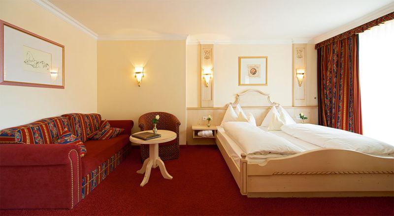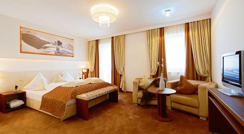 Suite ((ок.40 кв.м) - ванна/душ, туалет; отдельные гостиная и спальня; телефон, радио, кабельное телевидение, мини-бар, сейф, доступ в Интернет, фен, халаты, тапочки; балкон с видом на Ишгль.)