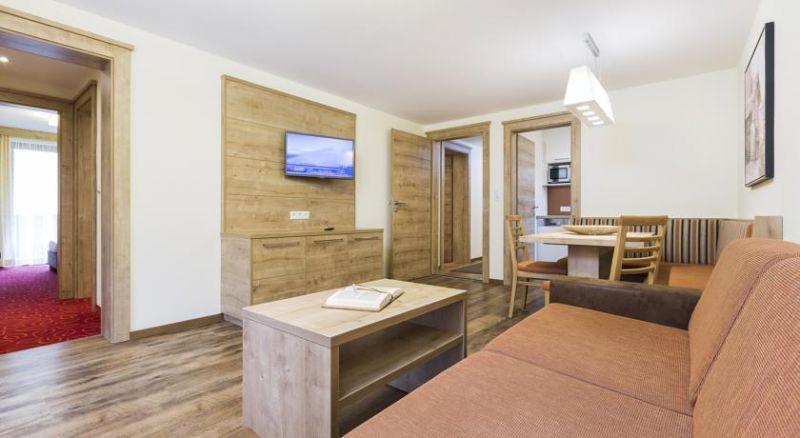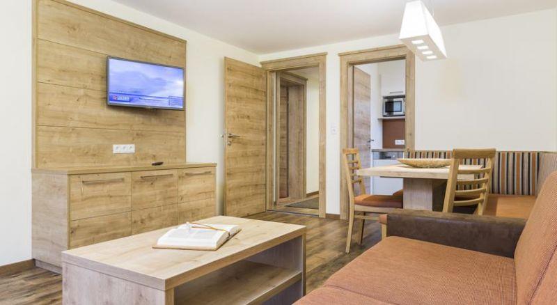 Апартамент на 4-х человек. В апартаменте, площадью около 40 кв.м — спальная комната, гостиная комната со спальными местами, кухонный уголок, душ или ванная, туалет, телевизор.