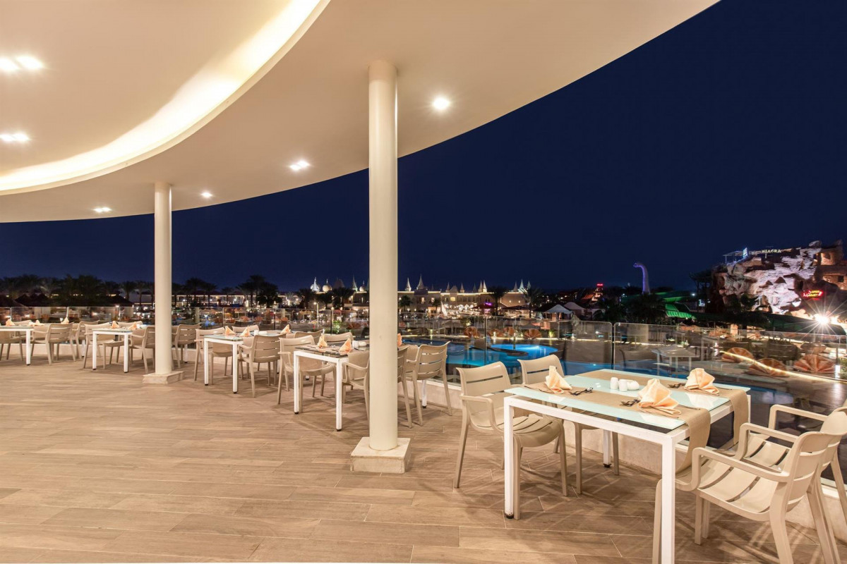 Только вернулись. Отдыхали с 14.05-23.05. Отель сам хороший, персонал старается, всё чистят, трут. Несколько раз в день что-то там в бассейнах смотрят, проверяют. Номер очень хорошо убирали. Тапки,щетки ,пасту,шампуни,кондеи,все принесли. В столовых тоже бегают убирают. Аквапарку, горкам, бассейнам, клубу вирт реальности твёрдая 5. Анимация неплохая. Для детей всё есть. Не чуствуется толпы, то есть в наши даты отель был заполнен на 95 процентов(по словам гида), но совершенно нет ощущения толкучки, как на территории, так и в ресторанах. Их там 4 шт. Далее минусы: 1.)Пляж-стремные, старые шезлонги, но с мягкими матрасами. И заход в море, он как-то через отбойник метр высотой, да ещё и через булыжники нужно переступить, не дай Бог на них упасть. И получаеться, лёжа на лежачке я не могу видеть ребёнка, что очень напрягает, если ребёнок не умеет плавать будете только с ним в воде следить. Бар на пляже тоже какой-то так себе, грязный что-ли, ничего там не ели, только пиво и соки брали. Ну и до пляжа может и не сильно далеко, но по жаре в самый солнцепек такое себе, нужно подстраиваться под трансфер. 2.)Еда -полностью однообразные завтраки, за 9 дней ничего нового. Обеды не могу оценить, так как часто пропускала их, но тоже вроде не блещут разнообразием..На ужины бывают фишечки. Голодным конечно не останетесь, но и гастро удовольствия не получите в отеле, хотя всё субъективно 3.)И самое, что испортило последние дни отпуска-отравление, да оно там есть. Хотя, отравилась только я, из моей семьи. Пришлось ехать в больницу, активировать франшизу, откапываться, но не помогло. И таблетки их и свои не помогли, еле до дома долетела, впервые такое со мной, хотя не первый раз за границей. Отель не пошёл на уступки, в связи с такой ситуацией, просила их продлить номер с 12 до 19 бесплатно, либо со скидкой. Нет, не продлили, платили 80 долларов. Советую ли я отель, да советую, готовьте желудки и вперёд