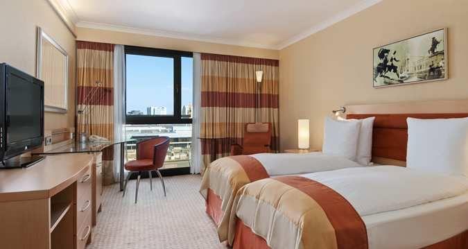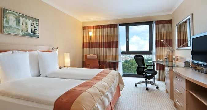 Twin Hilton Guestroom ((ок.27 кв.м) - ванна/душ, туалет; две отдельные кровати, отдельная кабинетная зона; кондиционер, телевизор с LCD-экраном (кабельное телевидение), беспроводной Интернет, мини-бар, телефон, фен, халаты, тапочки; возможно размещение двух человек.)