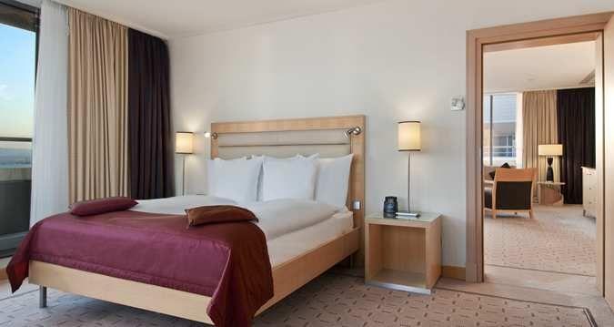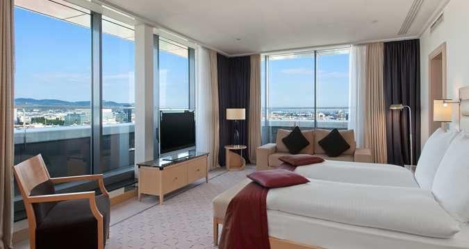 Penthouse Suite ((ок.65 кв.м) - ванна/душ, туалет; кровать king size, отдельная гостиная, окна от пола до потолка, диван, кабинетная зона; кондиционер, телевизор с LCD-экраном (кабельное телевидение), беспроводной Интернет, мини-бар, телефон, фен, халаты, тапочки, минеральная вода; балкон или терраса с панорамным видом; доступ в Executive Lounge; возможно размещение трех человек.)