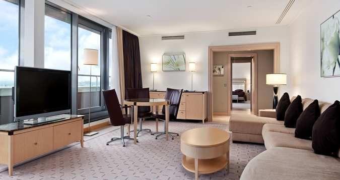 Suite Living Room ((ок.54 кв.м) - две ванные комнаты; спальня, гостиная; кондиционер, телевизор с LCD-экраном (кабельное телевидение), беспроводной Интернет, мини-бар, телефон, фен, халаты, тапочки, минеральная вода; доступ в Executive Lounge; возможно размещение трех человек.)