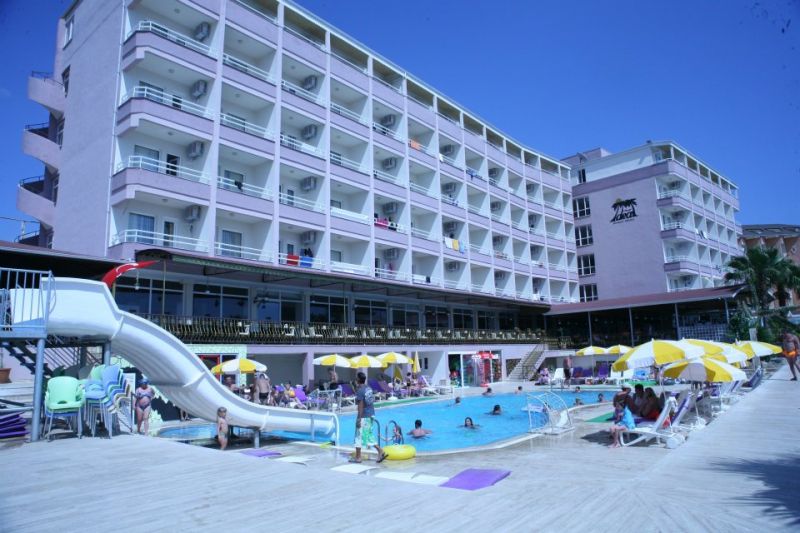 Отдыхали в июне. Никогда не писала плохих отзывов, но этот отель заслуживает это. В Турции отдыхаю уже на протяжении 15 лет. Напишу, как я увидела этот отель, а уж Вы решайте сами ехать или нет. Ехали до отеля 3,5 часа. Территория - только бассейн. Отель ресепшион -2 брата турка, не говорящие по-русски: один работает днем, постоянно рекламирует экскурсии из агентства, где работает его дядя, а другой работает ночью, говорят только на английском (удобно если что-то им не хотелось сразу включали "не понимаю"), интернет 2€ в сутки. Номер - простыни, наволочки серые, с разводами и полотенца были когда-то белыми, но теперь серые с дырами, фен не работал, вода на полу в ванной комнате постоянно стояла (или из душевой кабины или из унитаза) через решетку влетали комары, дверь в ванну закрывали, но все равно они попадали в комнату, холодильника нет, кондиционер работает, как трактор, а спать с открытым балконом невозможно, т.к.окна на дорогу (очень шумно ночью и днем тоже не отдохнуть, т.к. музыка невыносимо громкая (много туристов жалуется на это, но администрации наплевать) с утра до вечера (закрытые двери балкона не помогают от громкой музыки), просила поменять номер, т.к. он находился напротив динамиков, сначала ресепшион включил "не понимаю", а потом менеджер - женщина с короткой стрижкой запросила денег в €, а в итоге сказала нет сегодня свободных номеров, приходите завтра (и так издевалась 5 дней), хотя каждый день люди выезжали и заезжали по 20-30 чел, в стандартном номере (для 2-3 человек) ОДИН стул на балконе, нет столика. Пляж - туалета нет, вода платная, вход в море - плиты и камни большие, острые, только между ними можно купаться, а т.к. постоянно волны, то уносило именно на них. Анимация -3 парня (имена не знаю, один с бородой (этот ни разу не подошёл, у меня сложилось впечатление, что он просто отдыхал в свое удовольствие, другой с серёжкой в ухе, из Туниса (этот общительный, здоровался, пытался рассказать программы и т.д. ) и говорящий по-русски (этот хам, после того, как я попросила сделать музыку потише, т.к. после обеда хотелось отдохнуть мне и детям, стал специально включать громче, видя ,что мы пришли после обеда в номер, демонстративно не подходил к моим детям и не приглашал к играм, после моих наблюдений я заметила, что ему интересны только одинокие женщины, с которыми он общался, заигрывал и стрелял сигареты), устраивал игру водное поло во время работы горки (она работала в ограниченное время) и ворота стояли рядом со спуском, дети скатывались в играющих (почему нельзя играть в другое время или немного сдвинуть ворота, непонятно). Наблюдала, как англоговорящий турист ругался и чуть не устроил драку с аниматором, т.к.его ребенок скатился с горки и попал под руку играющего в водное поло, ребенок плакал, видно было, что больно. Ресторан - еда нормальная (на 3*), официанты шустрые, приветливые, но на каждом столе стоит пепельница, люди едят и курят (кстати, курят везде: в номерах, на балконах, у бара, у бассейна, про пляж уже не говорю) одна большая курилка. Отдыхающие - из Германии, Дании, Англии, Турции, Таджикистана, Украины, России... По территории ходит много людей без браслетов: друзья друзей и родственники администрации. Возмутил случай, когда 5-6 летний ребенок кого-то из администрации купался в бассейне вечером в 21, 22, 23 часа, но когда вошла в бассейн вечером девочка турист