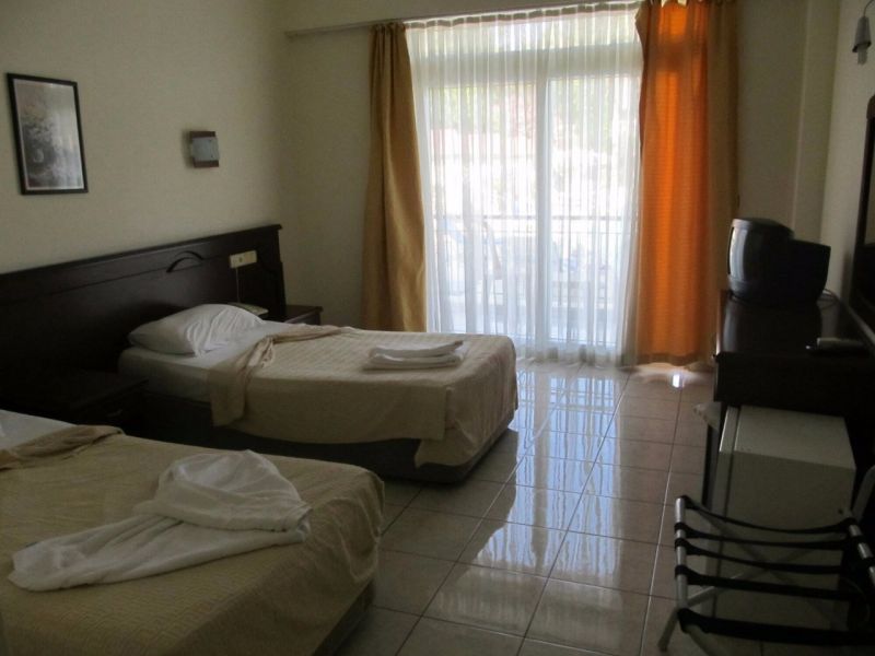 Отдыхали парой во второй половине августа ( 11 дней). Для 3-х звездочного отеля ставлю твердую 5! Порадовали, не ожидали. Прилетели около 8 утра. Нам предложили позавтракать, потом переодеться в технической комнате и сходить к морю. Вернувшись с моря ( около 11 утра) нас заселили ( без доплат). Большой номер в основном корпусе с видом на бассейн. В номере ТВ с русским каналом (ТНТ), маленький холодильник, кондей (работал очень тихо), в шкафу не было полочек, только вешалки-плечики. Уборку делали по требованию. Каждое утро девушка спрашивала нужно ли убрать комнату? Постельное поменяли 1 раз, что для нас вполне достаточно. В отеле очень чисто: постоянно метут песок со ступенек, моют плитку во дворе, стеклянные двери и т.д. Управляющий был всегда при отеле. Смотрел за порядком и чистотой, чтобы в ресторане всегда была чистая посуда и вовремя подносили блюда с едой взамен съеденным. Управляющему - наша благодарность за качественную работу Кухня - это отдельная история. Завтраки стандартные: яйцо вареное, яичница, омлет, каша рисовая на молоке, панкейки, мюсли, йогурт, оливки, колбаса и брынза. Тем кто любит мясо, думаю не в этот отель. Мясные блюда всегда были на обед и ужин, но выбор не велик. Если вы за здоровое питание, то вам сюда! Овощи на пару, на гриле, запеченные, тушёные, свежие. А как это вкусно, не передать словами. Даже мой муж уплетал и задавался вопросом:"Ну как они их готовят???" Выбор блюд в целом не велик, но голодными точно не останетесь. На обед и ужин каждый день -вкусный, сладкий арбуз. Других фруктов не давали. Из десертов - муссы, шоколаднвй бисквит и печенье, пропитанные сахарным сиропом . Я, если честно, ела как Слон, не потому что не наедалась, а потому что очень вкусно! Море близко - минут 5 спокойным шагом. Море, как парное молоко, очень чистое, просто супер. 1 раз ездили на дикий пляж на автобусе ( минут 10 езды). Заход в море так себе- каменистый, с расчищенными дорожками для входа. Лежаков штук 50, в принципе всем хватало. Эстетически наш пляж смотрелся "страшновато". Пару раз ездили в центр Кемера. Сразу, как выходишь из отеля, поднимаешь руку и останавливается автобус ( номер 7, Kemer), проезд 65 лир или 2 доллара с человека. В общем, отдых удался и очень порадовало соотношение ЦЕНА-КАЧЕСТВО. Однозначно, отель рекомендую и сама с удовольствием съезжу еще раз, при условии что нужен будет бюджетный вариант