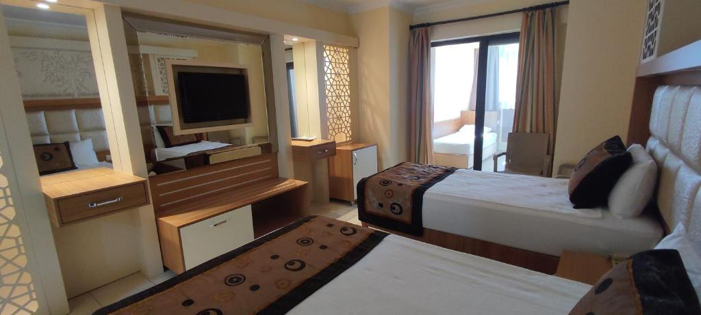 Отель на тройку, отравились в нем, территория да, красивая. Питание - за 2 недели, которые мы были там однообразное, мясо готовить не умеют. Возьмешь - вроде красиво смотрится, но не вкусно. Пирожные тоже не вкусные. Вспоминаю прошлые отдыхи, сидели помню там и ностальгировали как мы хорошо отдыхали в прошлом году. Ужасное ощущение. Отдали за тур 230 тысяч на 12 дней в октябре. Вообщем были разочарованы едой, а номер был ужасный, мы меняли его 2 раза, даже денежку давали, был ужасный шум - вентиляторы крутились в туалете пахло саниной, ну и вообще они там не убирались, пол за 2 недели ни разу не помыли, подходили жаловались, но бесполезно. Были семьей - я, муж, ребенок 2 года и я была беременна. По приезду слегли с дочкой в кишечный стационар, у мужа тоже кишечка была. У меня у одной кишечки не было, так как беременный организм их еду сразу направлял наружу) В общем долго выбирали, остановились на этом отеле так как территория живописная. Море реально классное, пляж удобный, пирс, удобно что несколько пляжей, всегда можно найти место, прогуляться можно немного. Еще рядом с отелем и в отеле магазин просто ужасный, там почти ничего нет. и в одежде нечего купить, ездили на такси до Авсалара - там уже купили себе одежды. Вообщем, не рекомендую. Это был худший отдых.