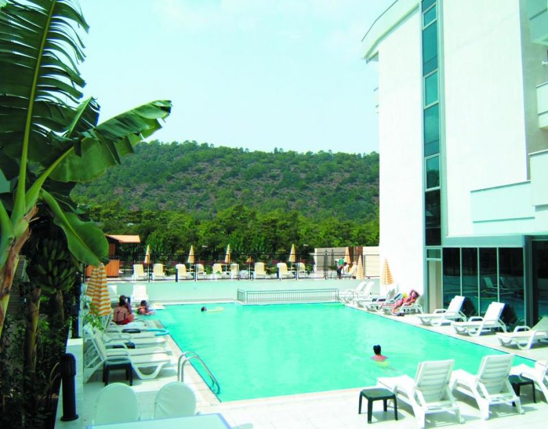 Небольшой уютный отель в тихом местечке Кемера, рядом горы и сосны. Номера уютные, что то сломано (крышка унитаза и полочка в ванной), не во всех номерах есть российские каналы на ТВ, но это все мелочи. Уборка номеров была за 11 дней 2 раза, так же и менялось белье с полотенцами. Еда была нормальная, мяса и рыбы не было, иногда была курица. А так, в основном много овощей и рис, из фруктов каждый день арбуз был, под конец появились яблоки и недозрелые сливы. Иногда был десерт. Вообщем голодным не останешься. Кофе и чай сначала были постоянно, под конец не всегда. Спиртного было очень мало, вино красное и пиво, хотя мало кто пил, но почему то все равно быстро заканчивалось. Пляж отеля на другом конце города, возит туда автобус, по дороге собирает людей из других отелей и обратно также, поэтому очень много народу в автобусе. Можно конечно ходить на платный пляж, минут 15 от отеля. До центра города недалеко, минут 10 ходьбы. На ресепшене замечательные ребята, всегда помогут и подскажут.