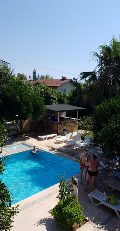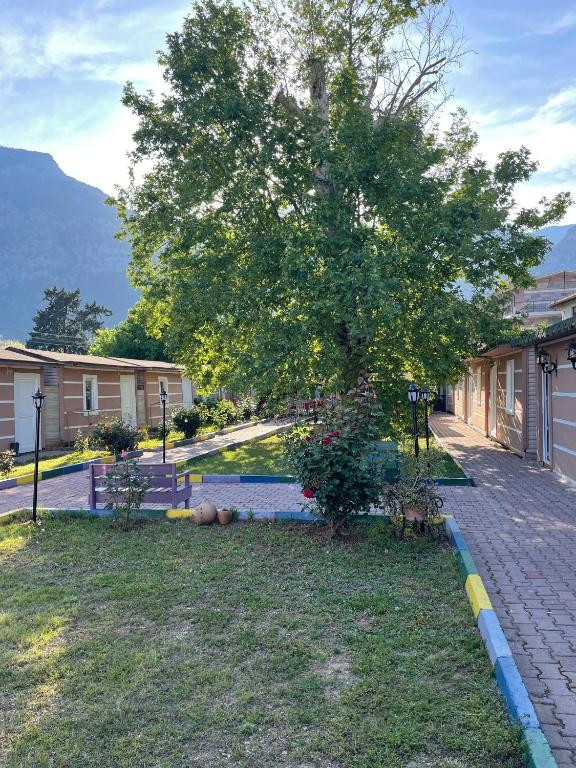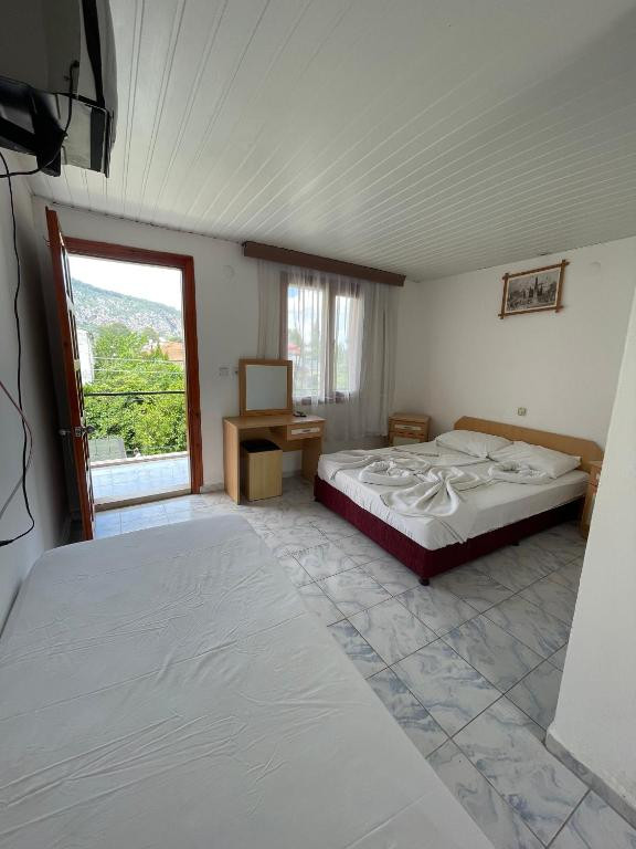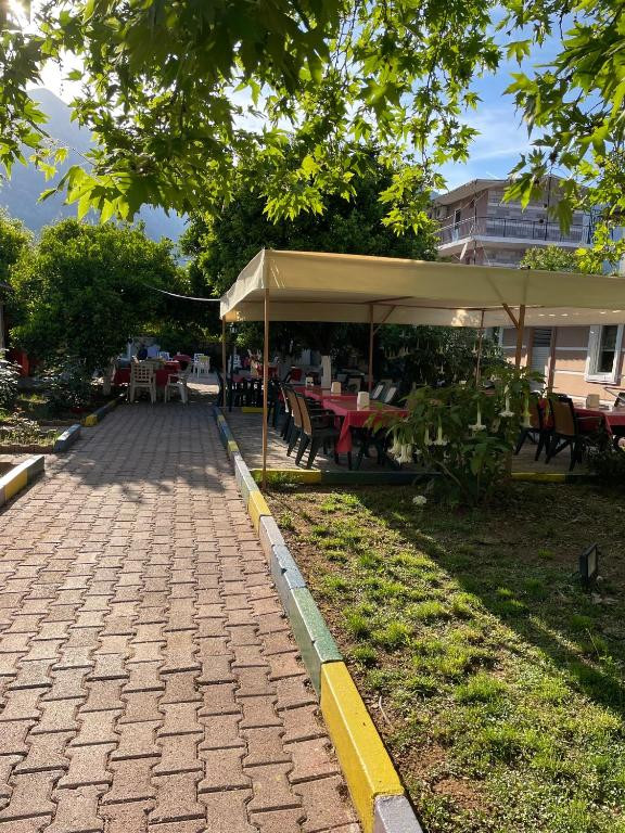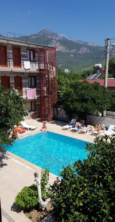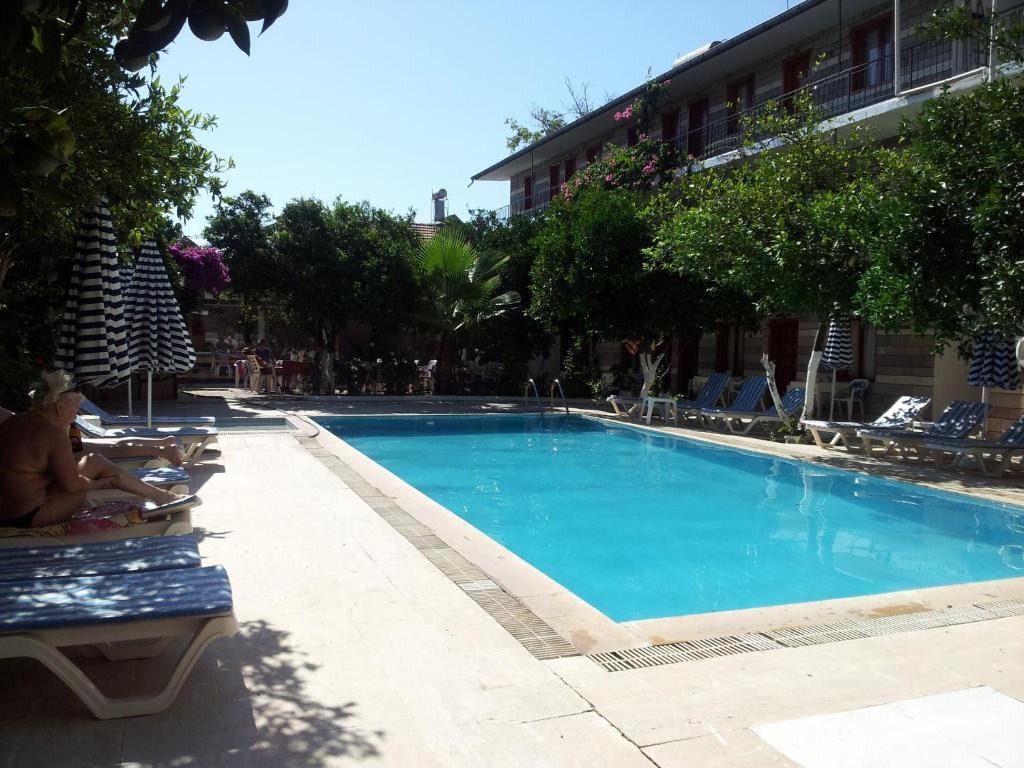 Первое впечатление от того, что рецепшеном трудно назвать, не было ошибочным по поводу этого кошмарного места. Приехали в 2 ночи, на псевдорецепшен подошли два зачуханных полупьяных мужика, заселили нас в номер в 3-этажном корпусе. Номер жуть, все грязное старое обшарпанное, стены побелены, уже посерели. Но это было не самым мрачным, что ожидало впереди. На завтраке в помещении столовки находиться невозможно, духота, на улице места заняты. Еда вообще пародия на еду, два джема, два вида оливок и арбуз)))) Салатики, колбаса бледно-розовая и красная, которую не ели даже тощие местные кошки, на раздаче два вида абы какого сыра. Положит два кусочка на тарелку и смотрит в душу, типа может хватит, не проси а((( Кошек жалко)))) Питались недалеко от этой ночлежки за 2-3 доллара лепешки их и супчики там всякие, айран оч вкусный по 1 доллару в магазе покупали, в общем без детей можно так питаться, с детьми не рассчитывайте на еду сразу. Ни мяса, ни рыбы, за неделю пару-тройку раз давали типа куриных нагетцов и консервы рыбной, испытывали еду на кошках и местном псе по имени Битто. Тощие животные ели, но с неудовольствием. Рисовую кашу на завтрак наверное специально готовили так, что бы люди в рот ее не могли взять, невозможно сладкая, и полусырая, каша оставалась целиком в их кастрюле, наверно, служила показателем, что люди сытые)))) Вместо масла - непонятная жижа, наверно маргарин. Если рассчитываете питаться на месте, ни с детьми и пенсионерам так это делать запрещено, еды нет, а то что есть - отвратительная, отзывы в которых пишут про спокойный отдых полная ложь, грязная бомжевская ночлежка думаю лучше. Что касается пляжа, действительно рядом, полотенец нет, лежаков тента всем хватает, оч позитивный дядечка, типа смотрящего за пляжем, море наичистейшее, фантастически бирюзовый цвет, но купание в первые дни небезопасно. Никто не предупредил, что при заходе под водой огромные булыжники, о которые не зная можно убиться, я в первый день ногу себе отшибла так, слава Богу не до перелома. Без тапок каралок вообще не рискуйте, покалечитесь. Поэтому, в первый день изучите дно, поспрашивайте, где там камни, походите по нему, а потом уже плавайте, конечно все это можно увидеть когда море спокойное, но у нас первый день немного штормило. Персонал, отдельная песня)))) Ходит по отелю менеджер Оля, с Молдавии вроде, молодая модельной внешности, но внешность обманчива, ведет по отношению к туристам себя совершенно неадекватно, буквально ядом дышит. На территории этой ночлежки поддерживается полная тишина, как в дурке, музыку абы какую вечером до 21 включат, а в 22 эта Оля ходит по территории, и предупреждает, что бы не шумели)! Подошла однажды к нам, к четырем теткам весом по центнеру, увидела у нас на столе бутылку вина красного, и пальчиком по столу постучала, типа не шуметь))) Нам, чтобы шуметь, ящиком не прошибешь) А если серьезно, маразм. Но это не самое отвратное, на пятый день нашего пребывания в этой ночлежке туда каким-то ветром занесло компанию молодых ребят, парни, девушки, как оказалось они жили в другом отеле, этот был для авиабилетов. Они вечером танцевали, веселились, многие гости присоединились. Говорили что молодцы, подняли настроение в этой богодельне хоть чуток. Так что вы думаете, эта неадекватная Оля на утро вызвала жандармов, типа мешают отдыхать другим. Мы конечно же засту