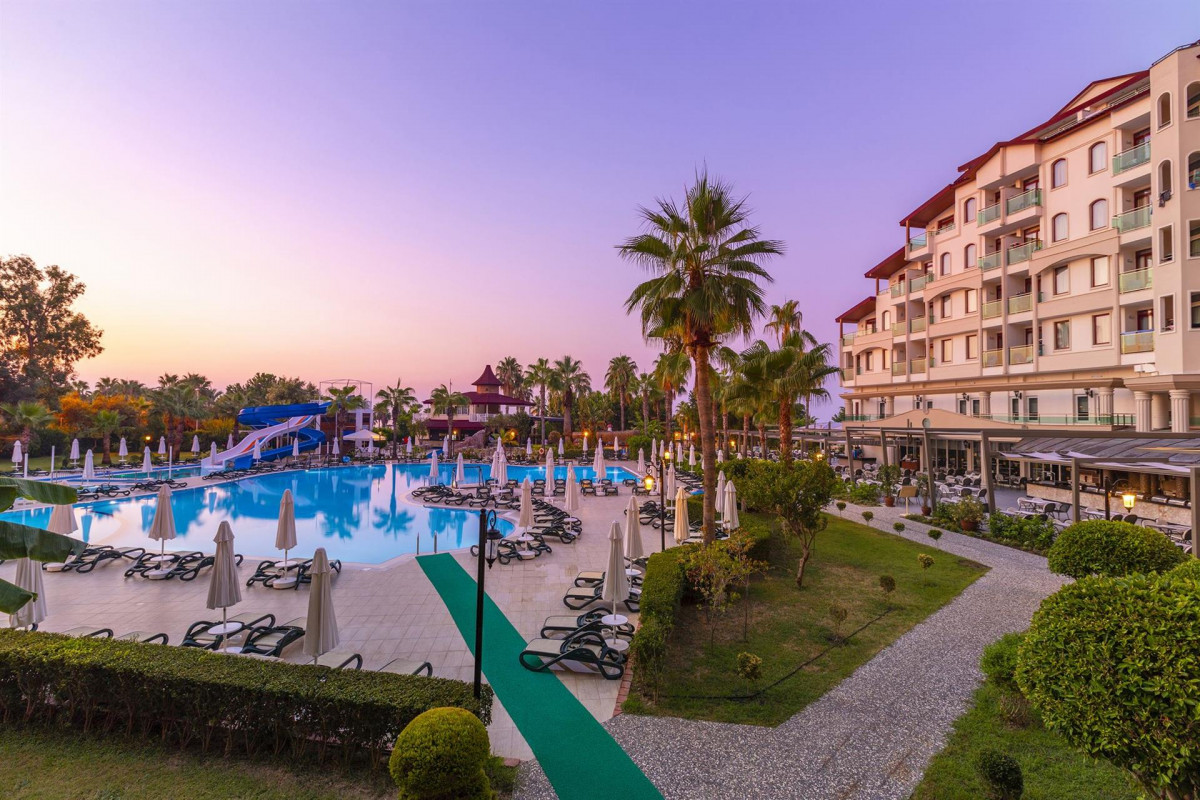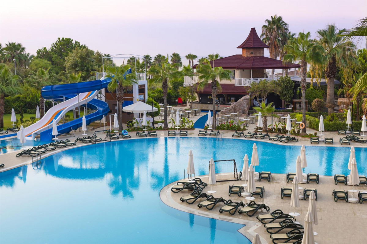 Отдыхали много лет назад,в июле ,не советовали друзьям,но друзья уехали,также не довольны.Не знаю ,чем он славится ,этот отель,вероятно только немцам нравится,они ведут себя ужасно,харкаются плюются прямо в столовой. Если столы на улице-то это отдельная тема, дышать нечем просто чмар стоит. Курят везде ! Еда- обычная ,много невкусного,в основном курица и индейка, немного фруктов,в основном яблоки -сливы,лимоны , яблоки сливы.пару раз - апельсины.был арбуз и грейпрут.Мяса толком нет,пару раз и за ним битва. Минус ,что очень скучный отель,наверно для пар с деьтми ,чтобы выспаться.Скучная анимация,хотя команда несколько человек,очень скучно.Для немцев,они любят курить и лежать,громко жутко громко разговаривать,особенно вечерами на балконах! до утра. Пляж,лежаки стоят очень близко, курят тоже все везде,первая линия и вторая занимаются с вечера наверно, мест нет никогда. Игры были. Море тёплое,не охадитесь.В июле в турции очень жарко ,душно и влажно, ходишь мокрый весь.Если только с малышами приезжать, но для них тут вовсе ничего нет,только тёплое море. Спустя несколько лет ,когда набрался существенный опыт ,есть с чем сравнивать,высокая цена ,неоправданая.Вроде алкоголь импорт. на волейболе мало народу,сложно даже команду собрать ,ленивые немцы. Проходили мимо спрашивали отдыхающих...ну так себе..нет развлечений никогда никого не видно,пустынно,мы были в начале октября- самый бархатный сезон ,прибавились лишь палатки -шалаши ближе к морю ,платные,вот и все изменения.
